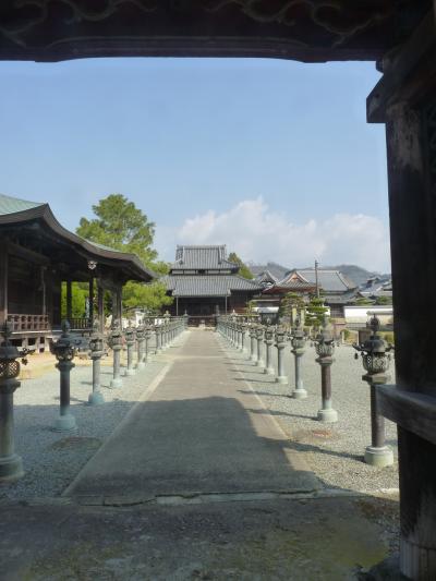 旧市街の中昔の街道を歩いていると道筋に立派な山門が堂々とそびえている。山門前には駐車場もあり車を止めてお参りする。山門をくぐると立派な参道が本堂まで続き両脇に燈籠群が整然と並び圧巻である。右側には三重塔も聳え立派な神社構えで、左側にも各お堂が立ち並び、各所の見る所はそれぞれ由緒ある建物でした。