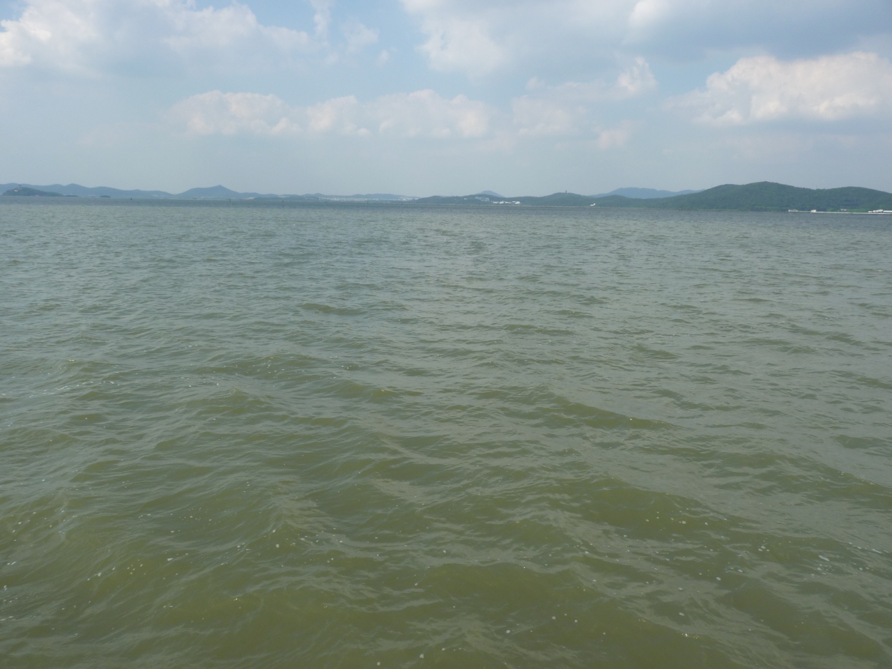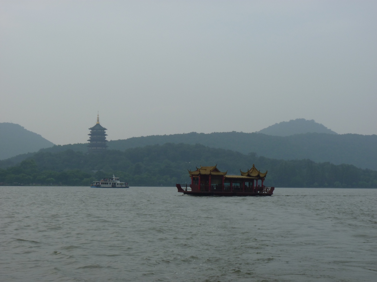 杭州西郊外に似あることから「西湖」と呼ばれ、推進派浅く1.8~2.8m程で,周辺には各所に船着場があり、手漕ぎ船ヤモーターボートや屋形船のような遊覧船が次々と発着している。対岸にまで行き違うところで降ろしてくれる遊覧船もある。券を買う時によく注意すること。
