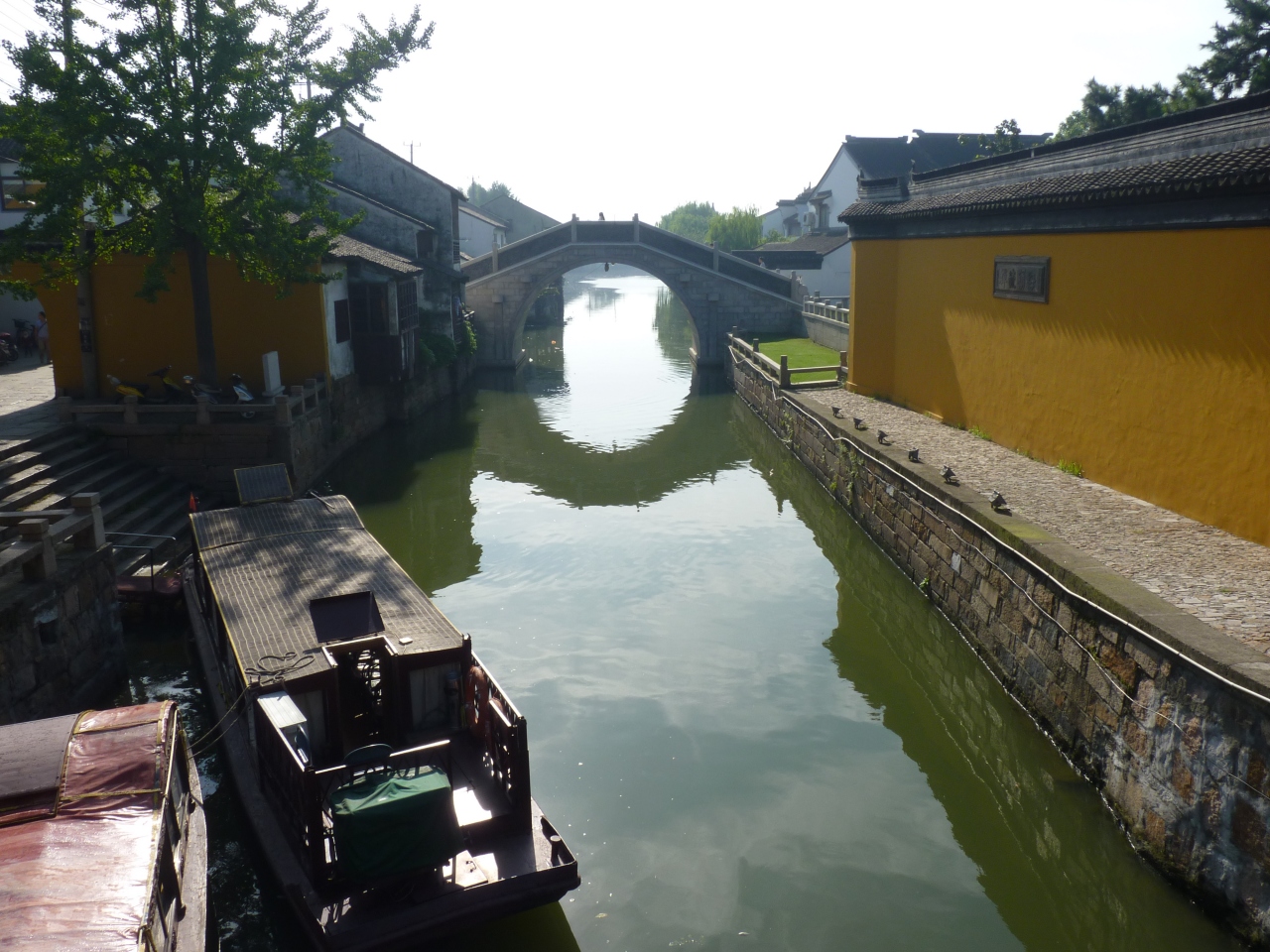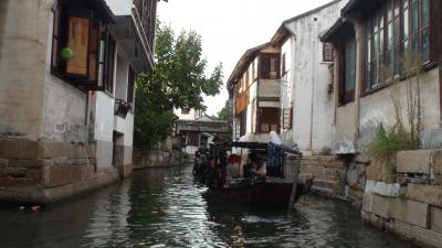 運河は、船がやっとすれ違う位の狭い水路を、定員8人乗りの手漕ぎボートを上手に操り、古い町並みを見ながらゆっくりと進む。日本人とわかって、ボートをこぐおばさんが「北国の春」を中国語で歌ってくれた。
