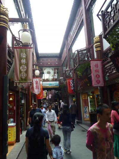 入り口に来るや、両脇にはすらっと露店商人の店が所狭しと並び、足の踏み場も無いといった感じ。中に入ると昔からの落ち着きのある建物が池を囲んで、ここだけは昔の面影を残している。老舗の御茶屋さんなどで中国茶のジャスミン茶。菊花茶などを購入するのも良い