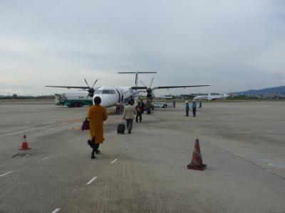 伊丹空港から秋田への路線を利用したが、ローカル空港への旅はタラップ無しでバスに乗って待機している場所にまで運ばれる。空港までのアクセスはリムジンバスがいろんなところから頻繁に発着しており大変便利である。夫後期はプロペラ機で幹線路ではないのでのんびりした機内飛行を楽しんだ。