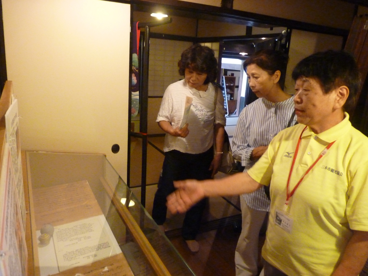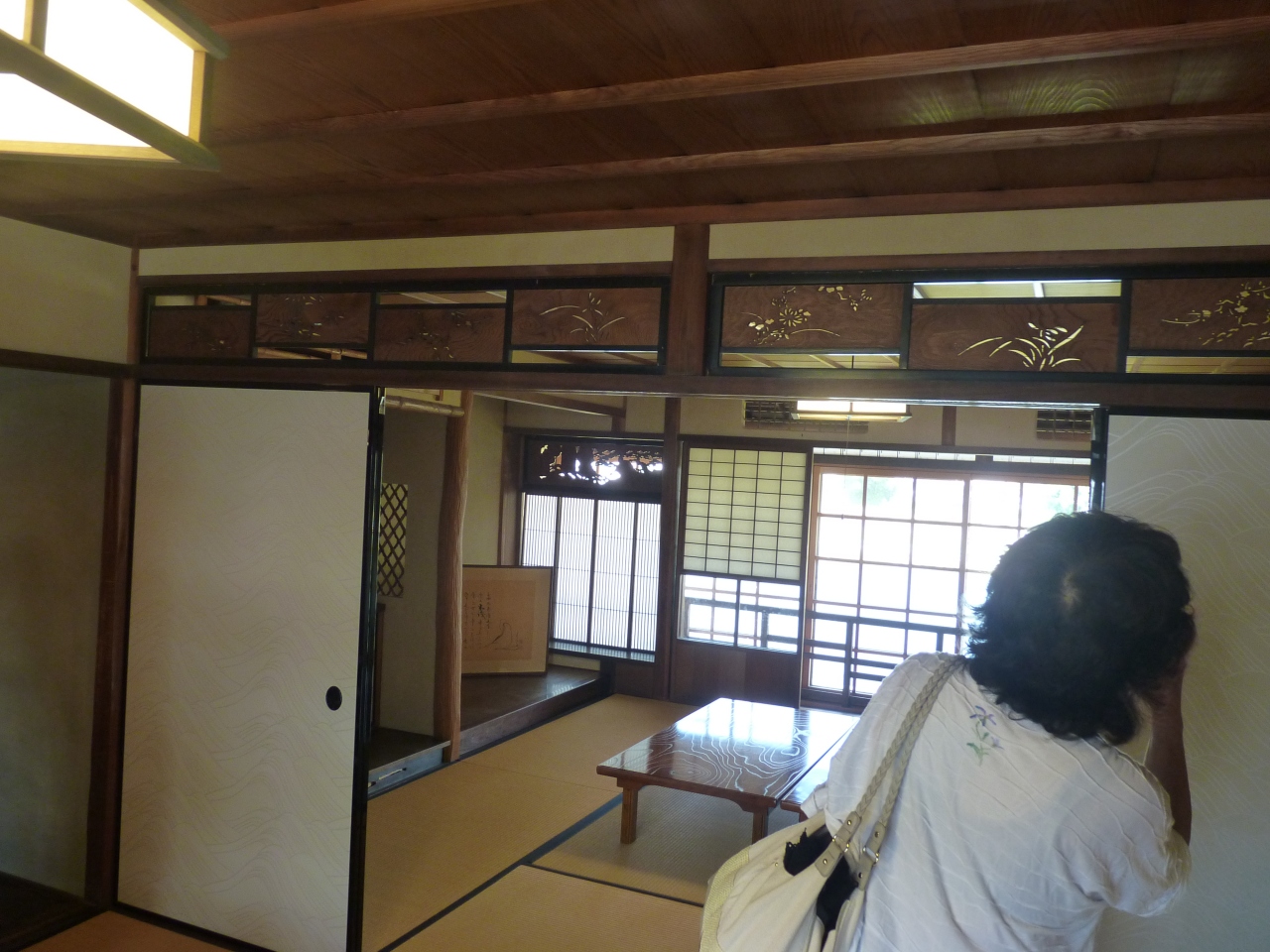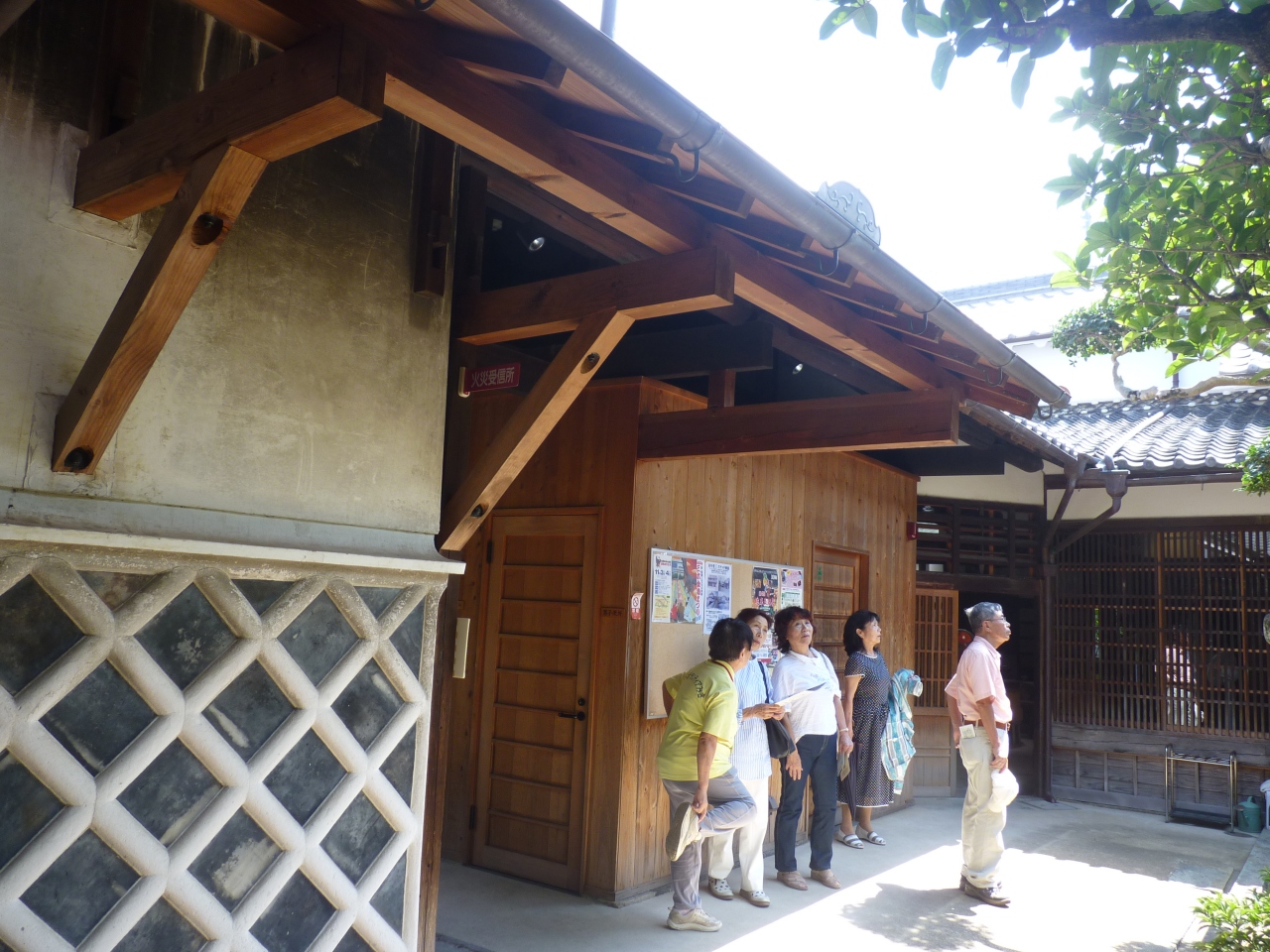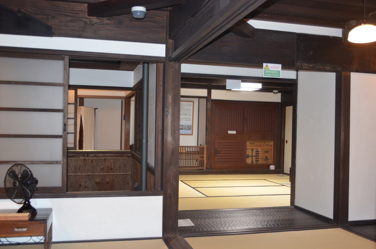 旧小河別邸を訪れるとそのコースの一つに旧玉置家住宅がある。ここも国登録有形文化財となり、地元ボランテイアの方が無料で案内してくれる。ふすまに張られていた当時の古文書や広告用用紙等が一枚一枚丁寧にはがされ、当時の貴重な資料が紐解かれ展示されているのも興味深い。ギャラリーの展示場や喫茶コーナで休憩も出来る。