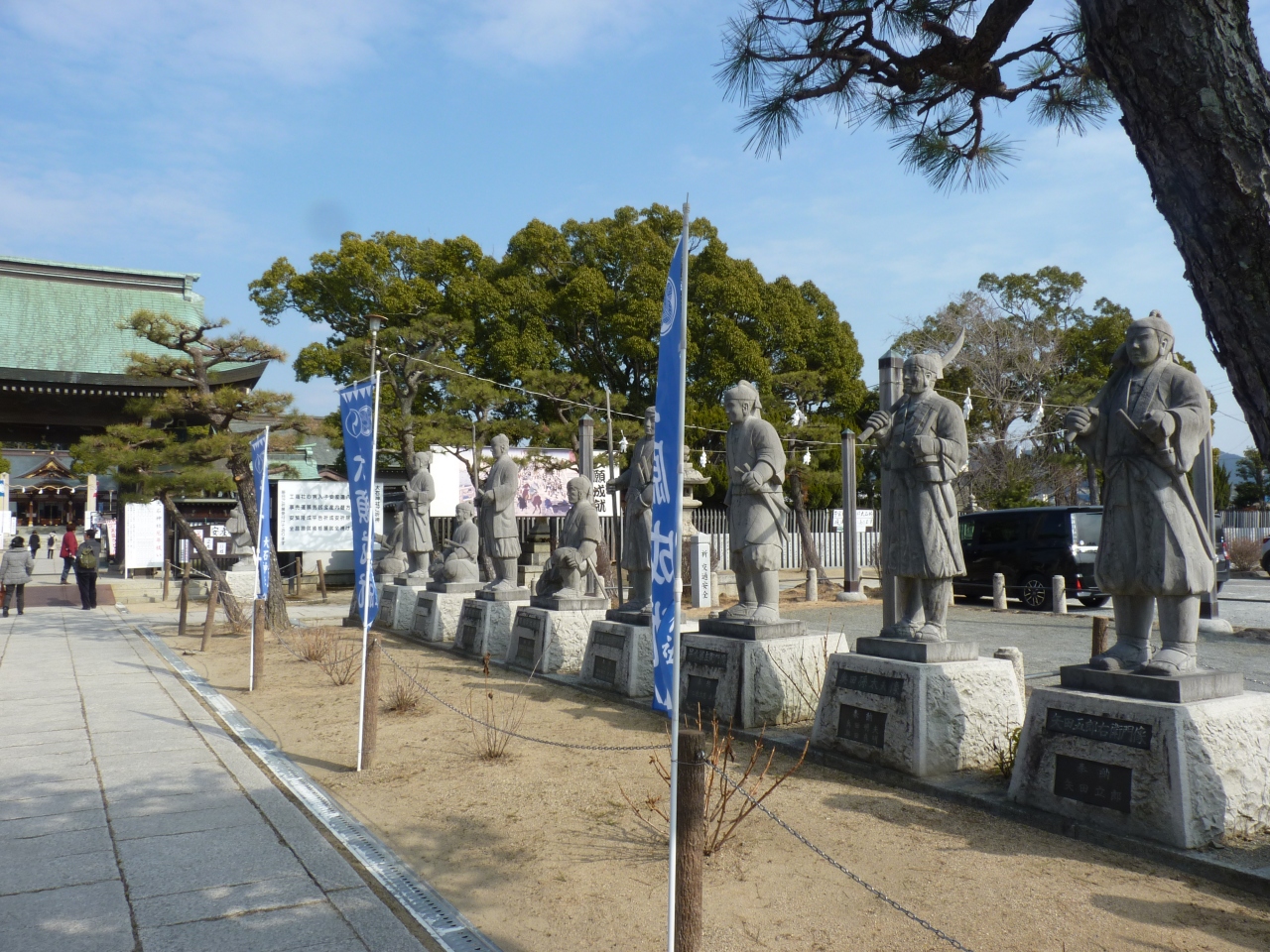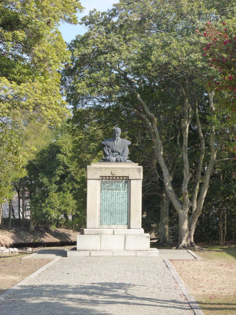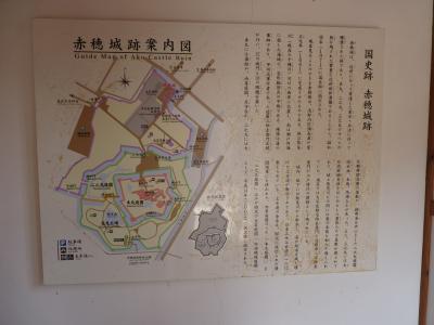JR赤穂駅下車後南に歩いて約15分程で大手門入り口に着く。ここは12月14日の義士祭での出発点として有名です。矢印に従って進むと大石神社、山鹿素行の像、庭園などを見て本丸の入り口に着く。門を潜っても中は公園になっており何もないが本丸跡の石垣が見られる。