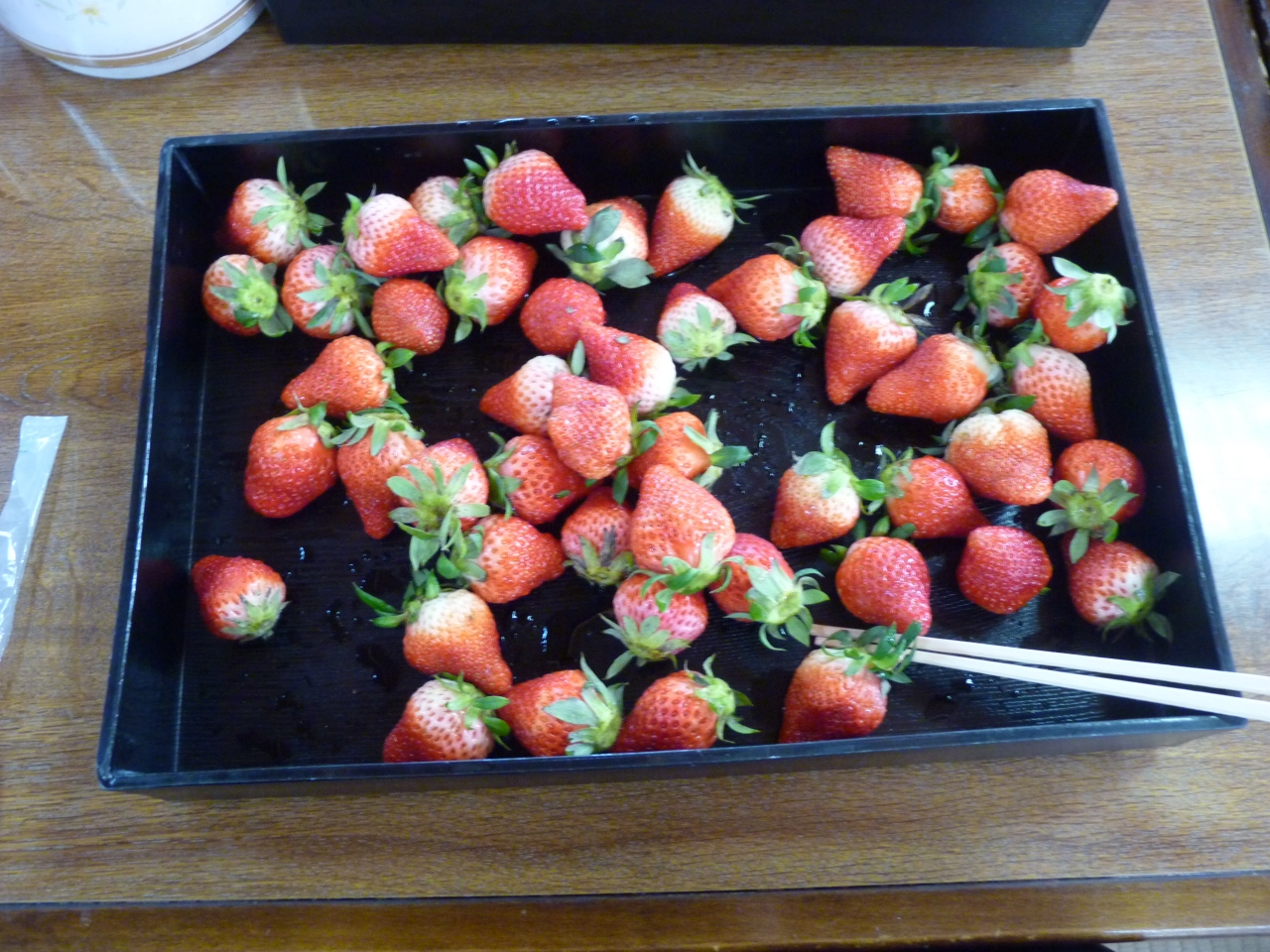 道成寺の門前にあるみやげ物店で1Fがみやげ物販売で釣鐘饅頭が有名です。バスツアーで参加したので2Fがツアー用の食堂となっておりここで出されたのが和歌山オリジナルのイチゴ・まりひめでした。3月までは食事後食べ放題とのことでたくさんよばれました。