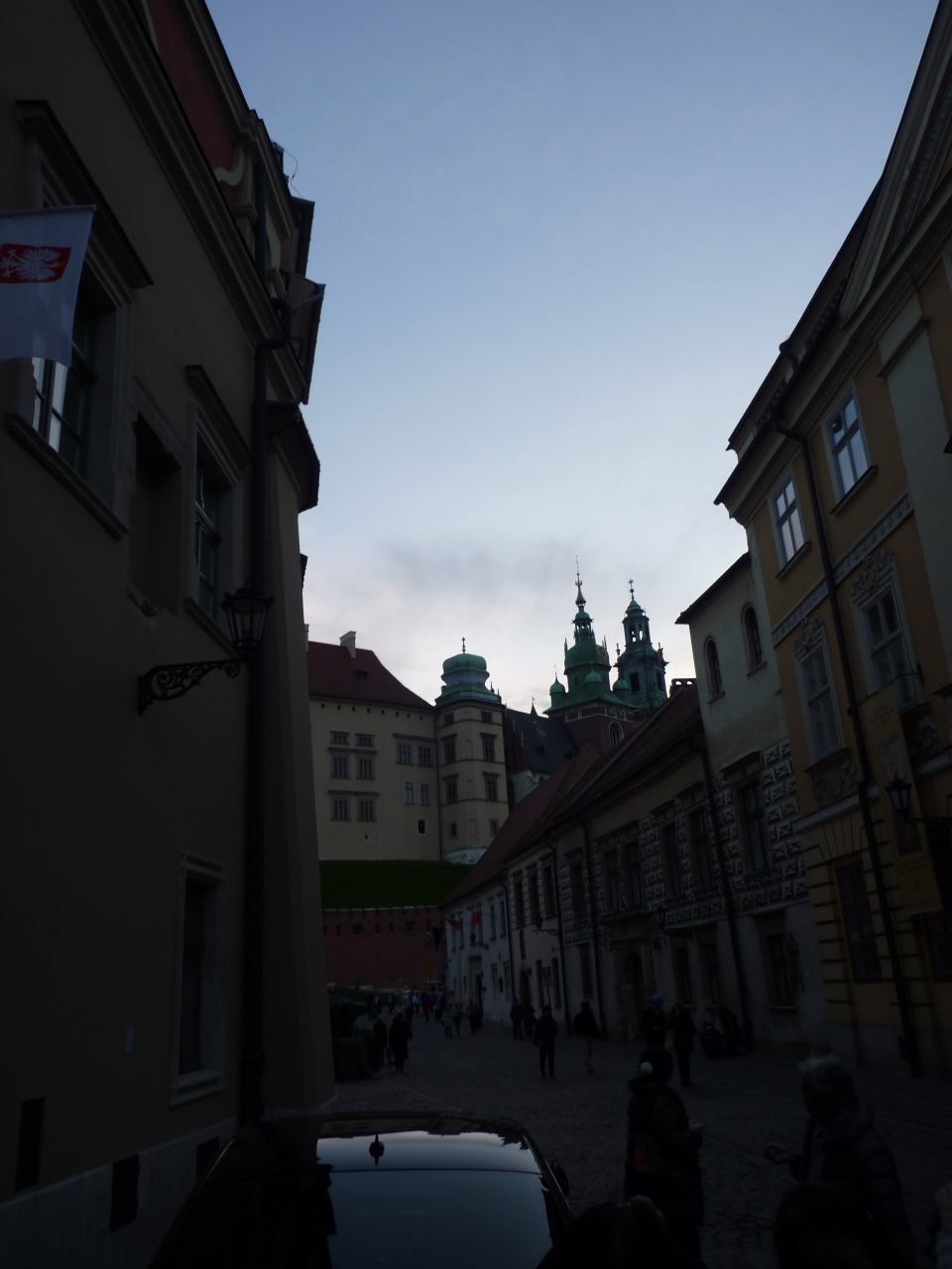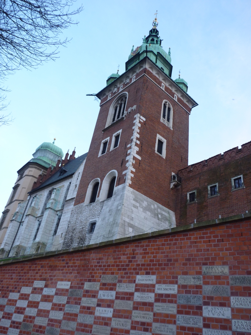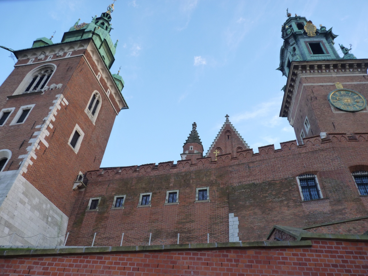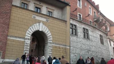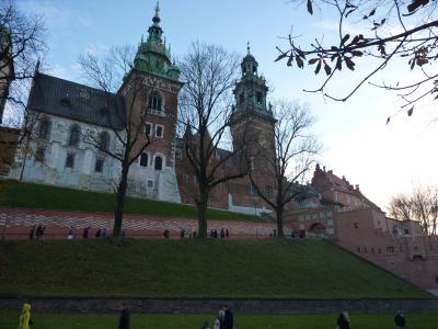 旧市街の南のはずれにあり、ヴィスワ川に沿って建っている。坂道を約100mほど登り詰めた正面に門が見えてくる。ここは歴代ポーランド王の居城として有名なところで天高く斜塔がそびえている。中に入ると大聖堂や旧王室が並び観光客で一杯だ。