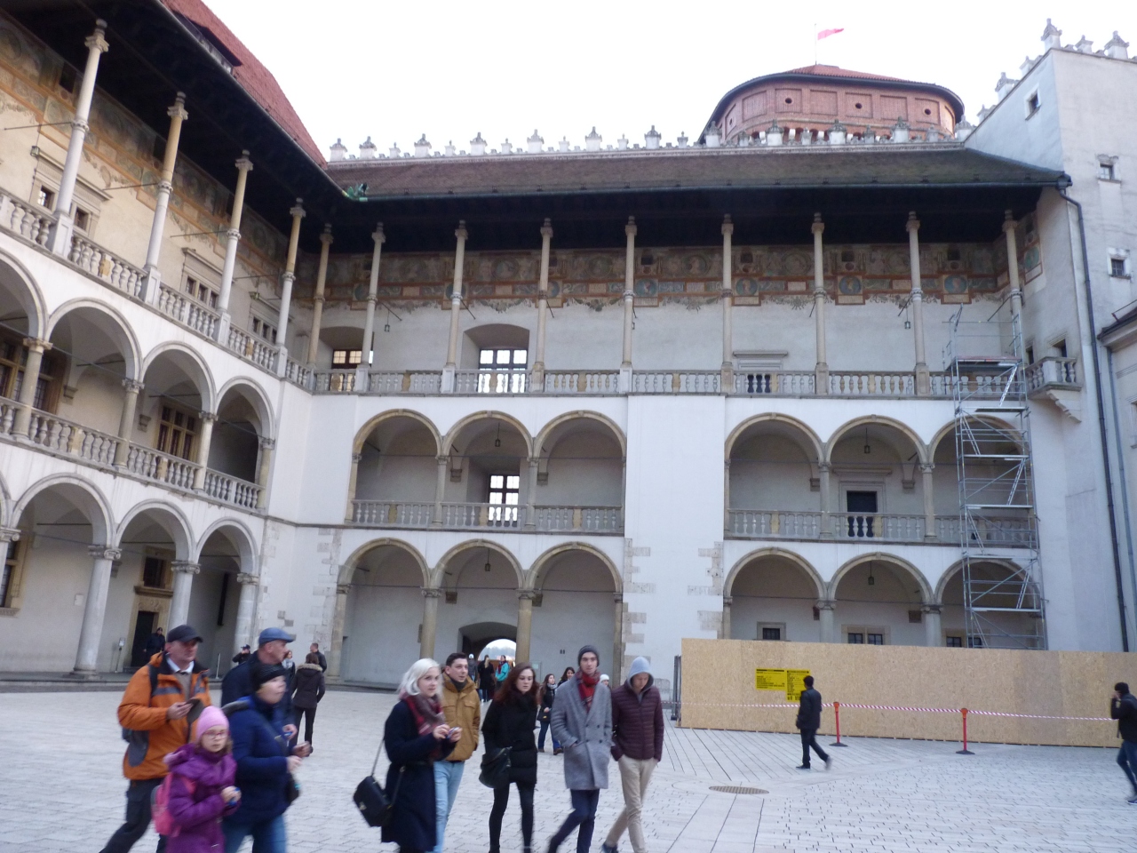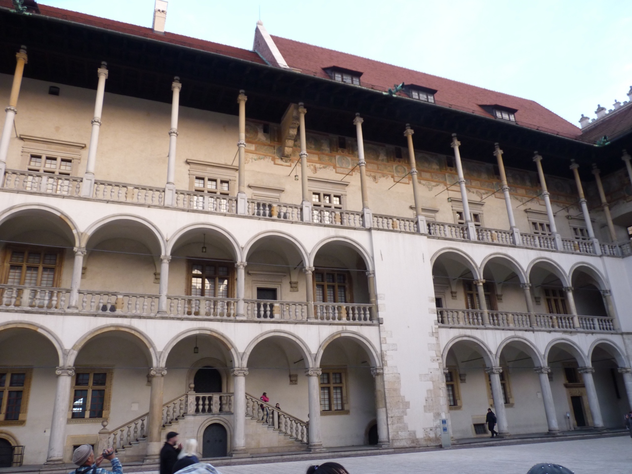 小高い丘の上に立つヴァルヴェル城。城壁を囲んでこの中に大聖堂と旧王宮が共存している。中庭を潜り抜けると四角く囲まれた館が見えてくる。周囲を取り巻く建物はジグムント1世が建てたゴシックとルネッサンスの複合様式のものと聴き珍しく感じた。各階層ごとに仕切られた部屋が層毎に異なっているのも面白い