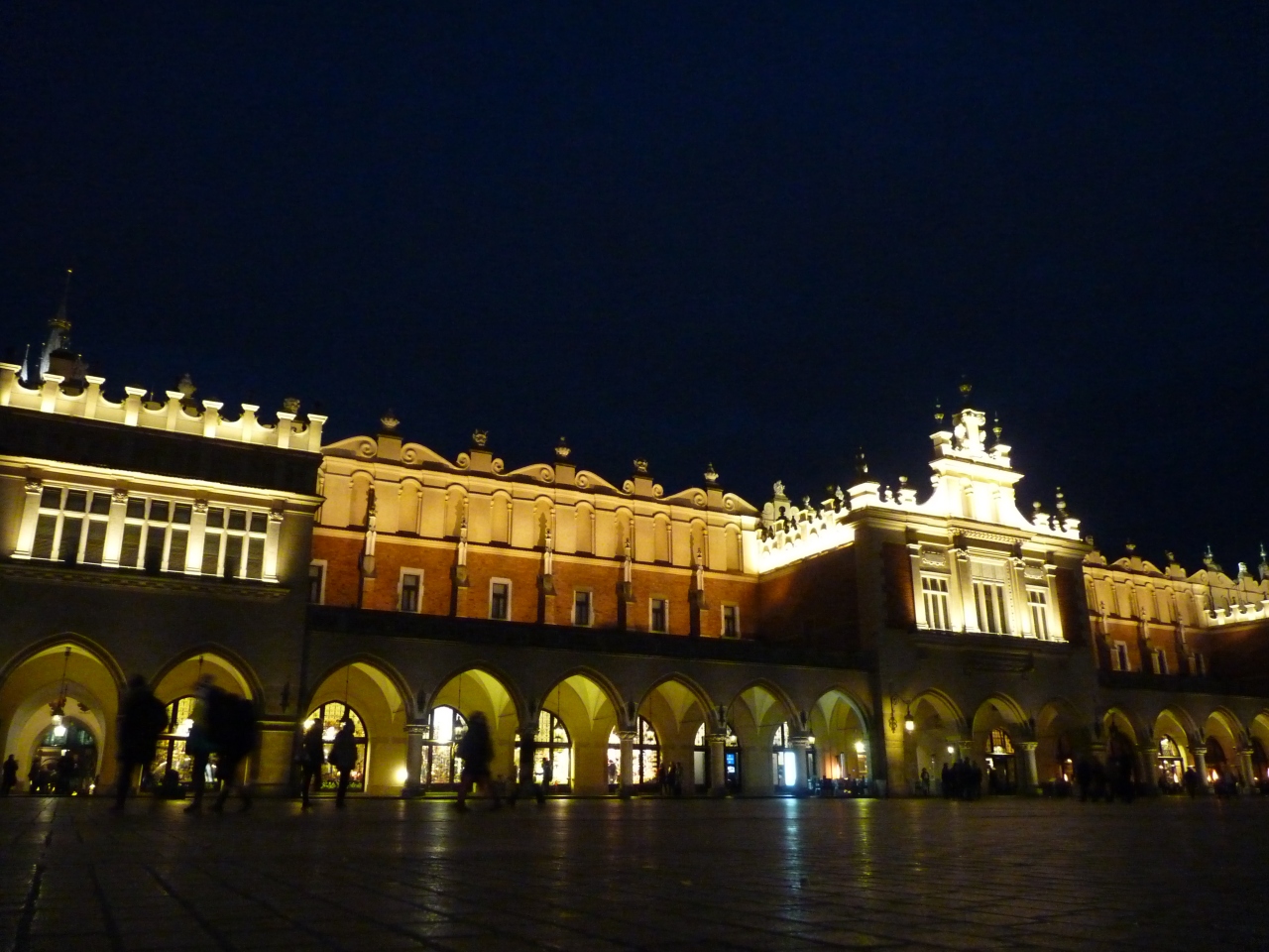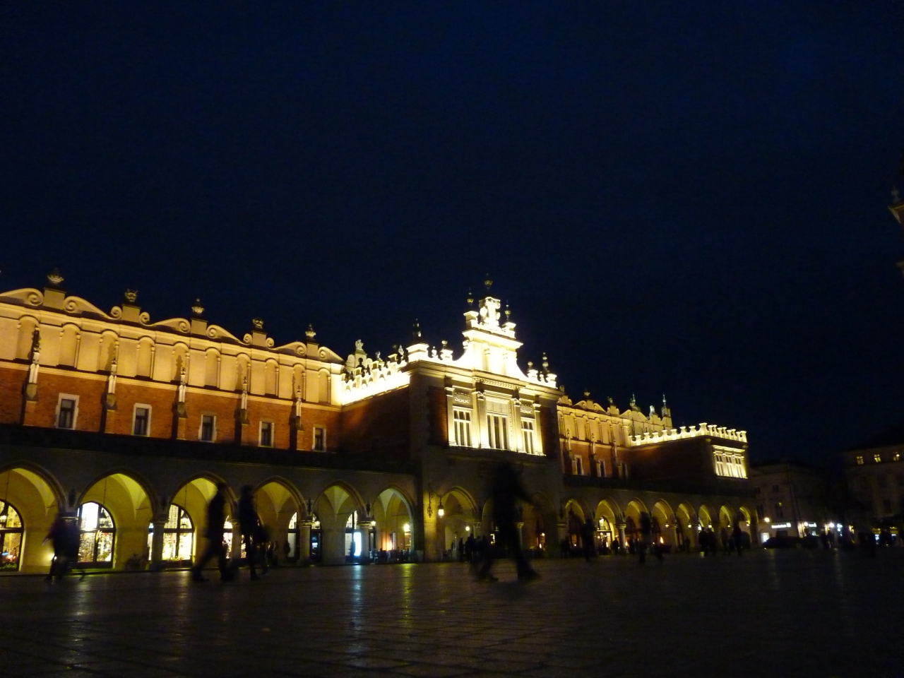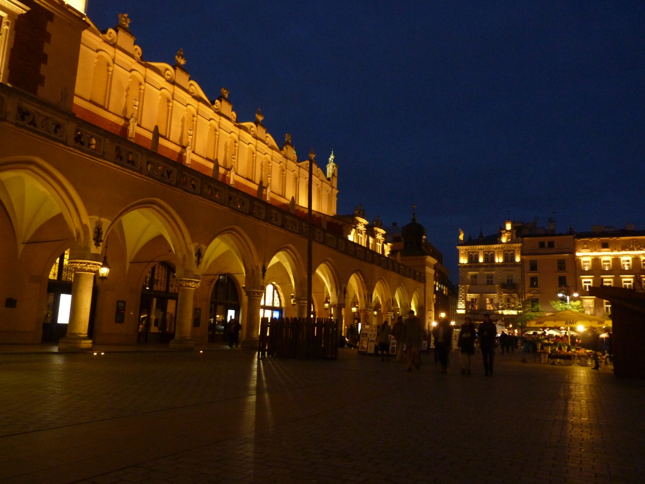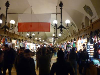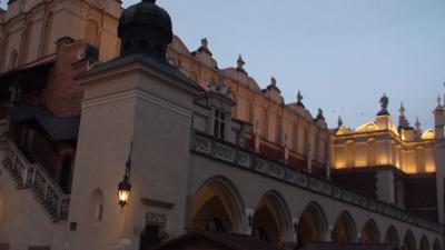 ポーランドの京都といわれるくらい雰囲気的に落ち着いた風情を見せる街で多くの観光客で賑わい、昼は観光馬車や大道芸人たちが迎えてくれる。夜はライトアップされ食事を楽しむ観光客も目立つ。織物会館の1階では多くの土産点が軒を並べ賑わっている。ここの名産の琥珀など値切り交渉で安くなる。