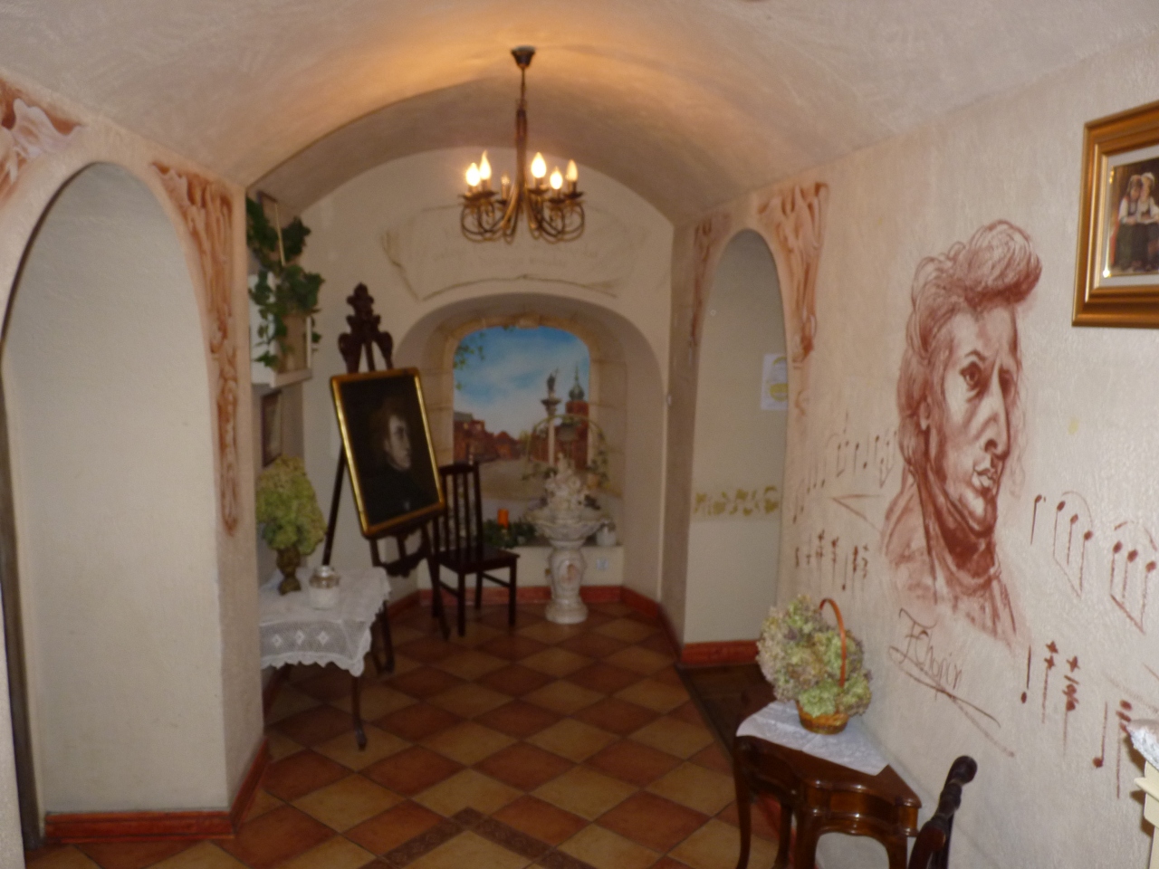 クラフクに残されたショパンが通ったといわれる有名なレストランで、フアンならぜひおとずれてみてください。部屋は当時のまま残されショパンが常時訪れ食事したとされる場所がそのまま残されている。奥に入るとショパンがらみの絵画、デッドフンガー、壁絵が見られる。食事もおいしかった。