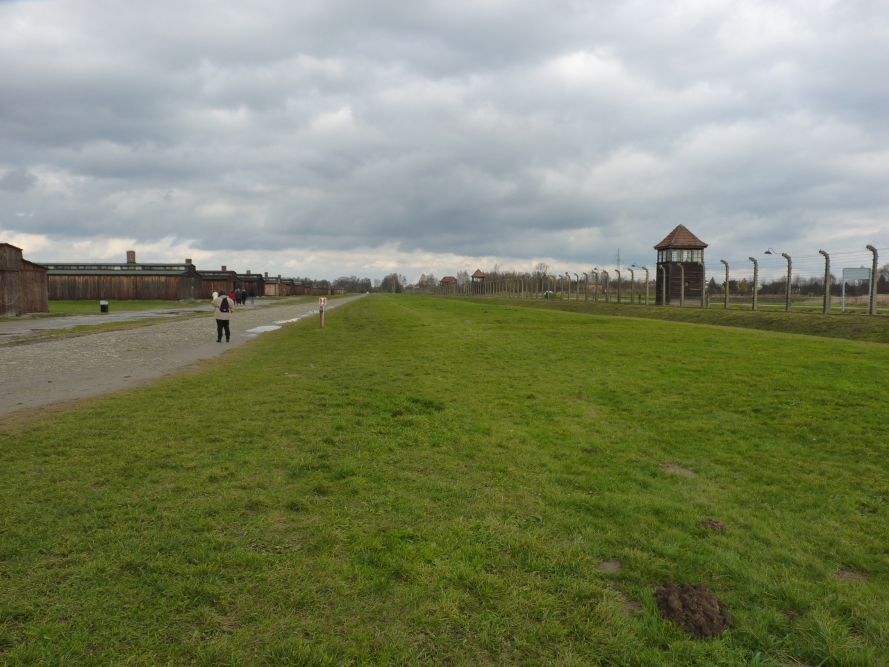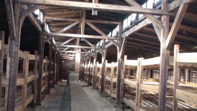 アウシュヴィッツ強制収容所から約2kmほど離れたところにある。バスを駐車場で折200mほど歩くとオシフイエンチム駅から続くレールの終着点になっているビルケナウに着く。広大な面積は1、4k㎡に300棟以上のバラックが立ち並び一部が再現されている一大殺人工場であった。一部が開放され中を見学することが出来る。