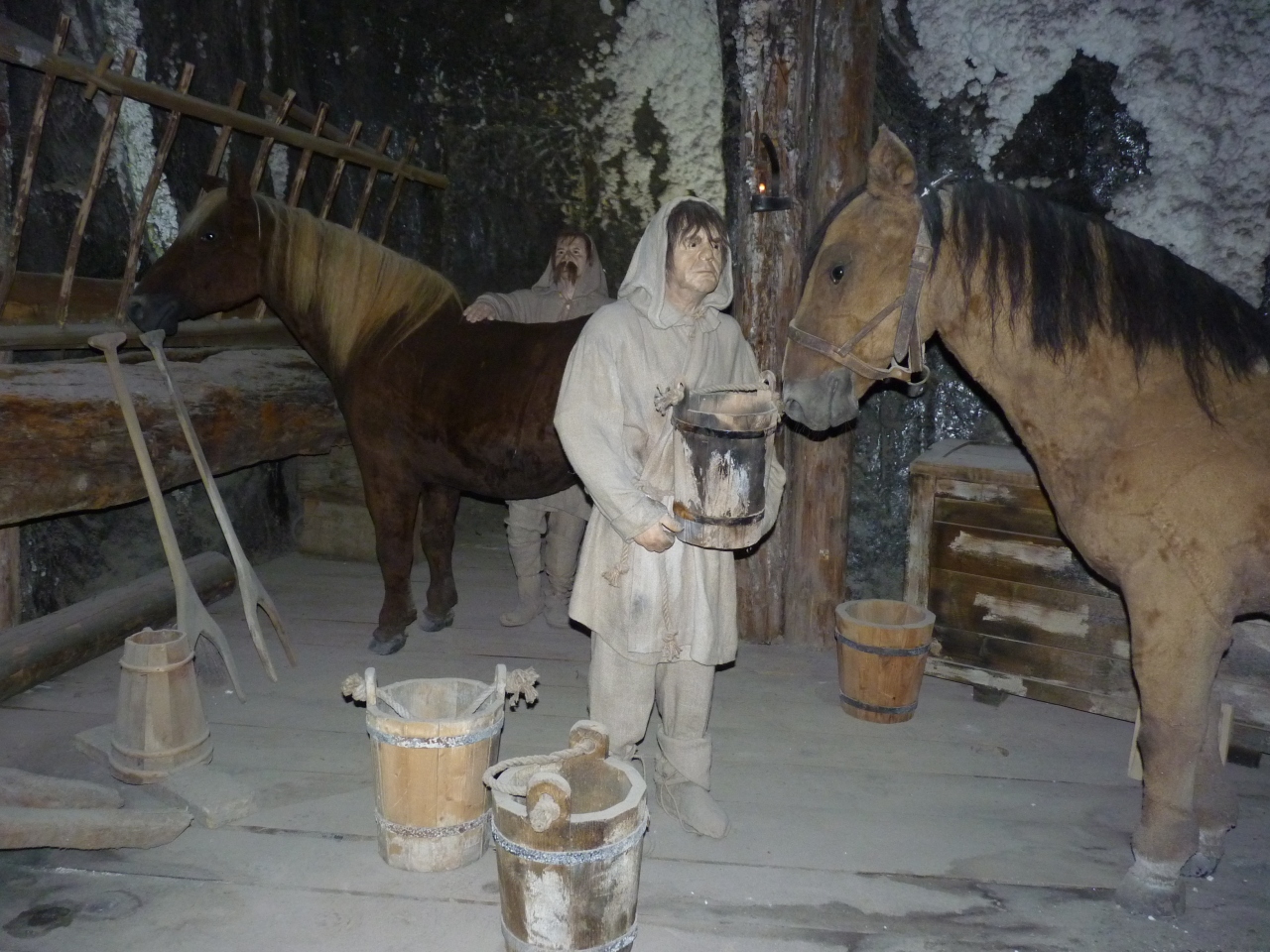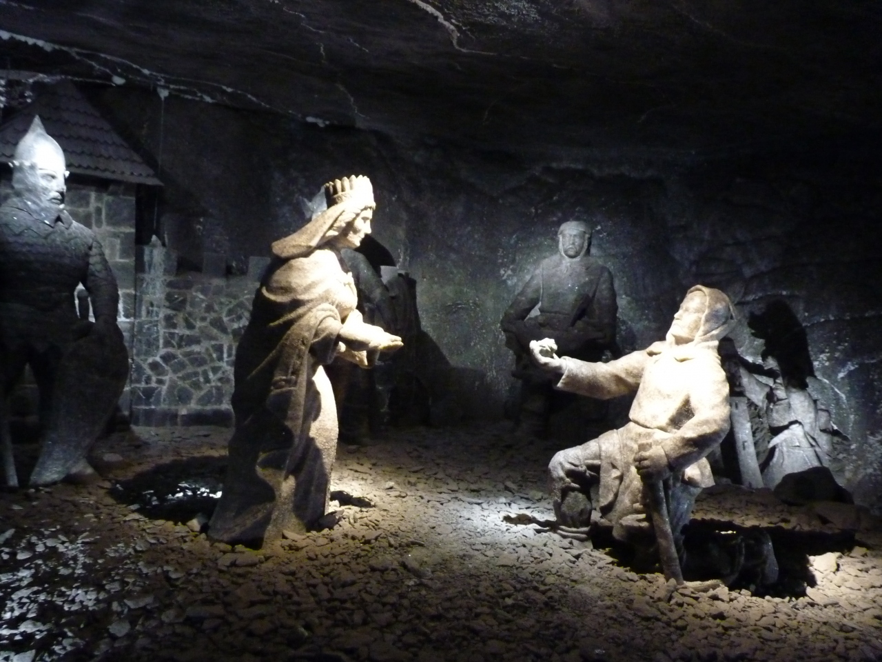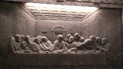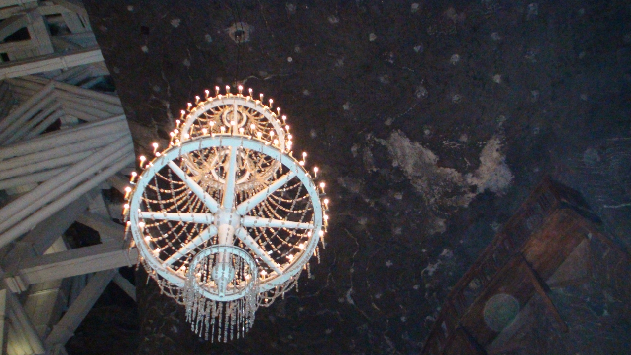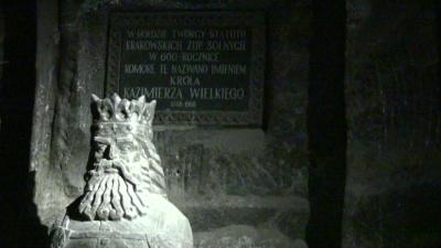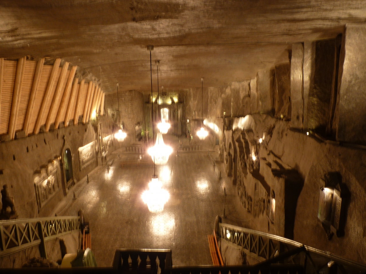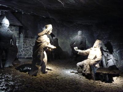 地下65~105mを観光ルートに従い、採掘場を一般観光客に公開されているユネスコ世界遺産を歩く。入り口から当時のエレベータを使い地下65mまで一気に降りる。ガイドに率いられて進むと採掘路の沿道に岩塩で作られた作品があちこち見られ楽しむことが出来る。ハイライトは聖キンガ礼拝堂で大きな空間の神秘的な姿に圧倒される。