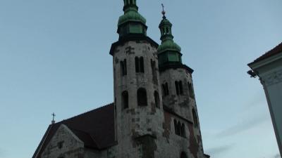 旧市街地の南の端に位置し、聖ペテロパウロ教会のすぐ南に聳える2本の塔を持つ教会で、クラフクでは一番古い教会です。聖ペテロとは対照的でレンガ造りで出来ておりところどころ剥がれており古さを感じる。窓も小さく当時そのものの姿で残っている。