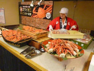 雪の国道9号線を北上すると左の山すそに一際目立つ7階建ての大きなホテルが飛び込んでくる。さすがこの時期ゆえ、雪の心配をしたが幹線道路は除雪され問題なかった。ここの売りは夕食、朝食ともバイキングスタイルで自分の好みの食事を満喫して6階の大浴場と、7階にある露天風呂でゆっくりを雪見風呂が楽しめることです。チエックアウトも12時でゆっくり出来る。
