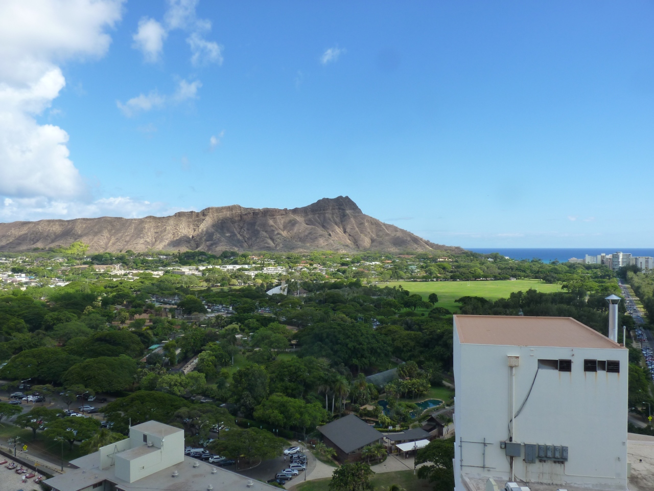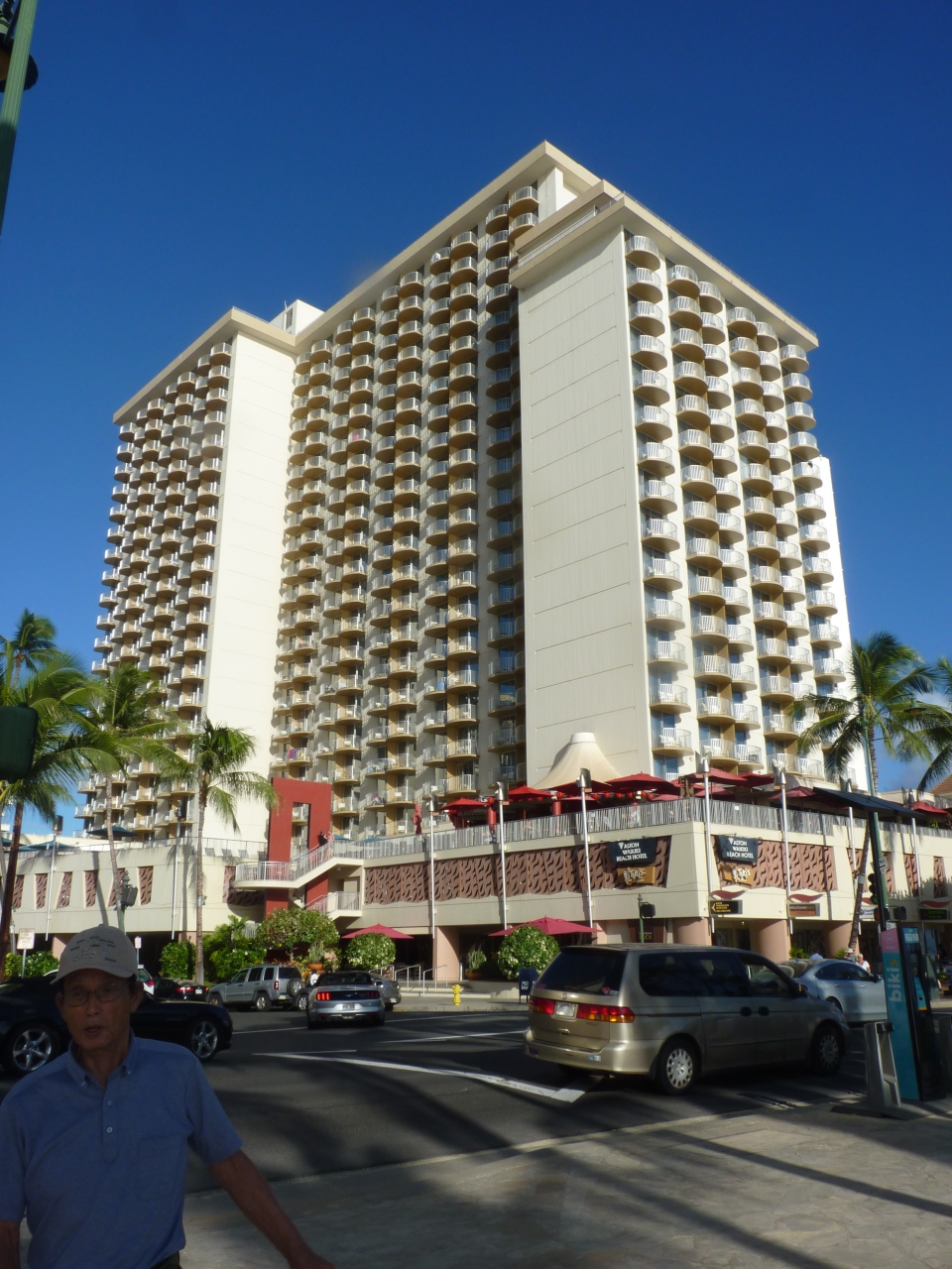 ワイキキビーチ沿いにある一番西側に位置する高級ホテルで、ホテルの部屋からはダイヤモンドヘッドが一望で眺められて。浜辺までも道路を隔てればすぐに行ける好位置のホテルであった。ホテルのすぐ前が海水浴所でありシャワーや公共設備も整っている。