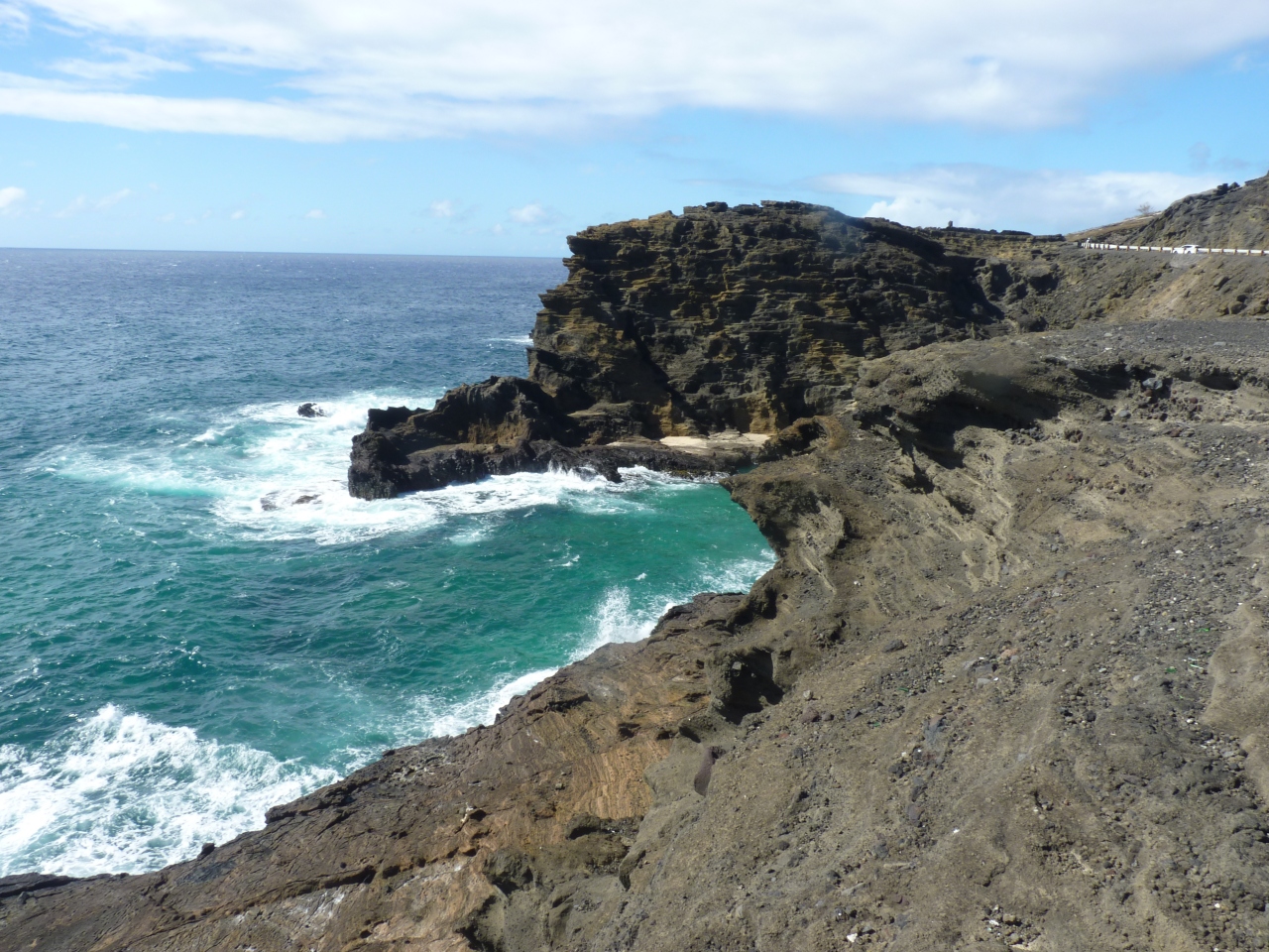 ここのビーチへ行くのにはマイカーかタクシー、専用チャーター車しかなく岬のはずれにある。それだけに一年中強風が吹きすさびココたちには絶景のポイントの一つになっている。岩にに吹き付ける波風はその分絶景で、景色を観に来る観光客を楽しませてくれる。