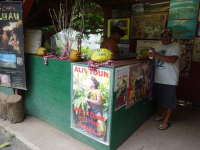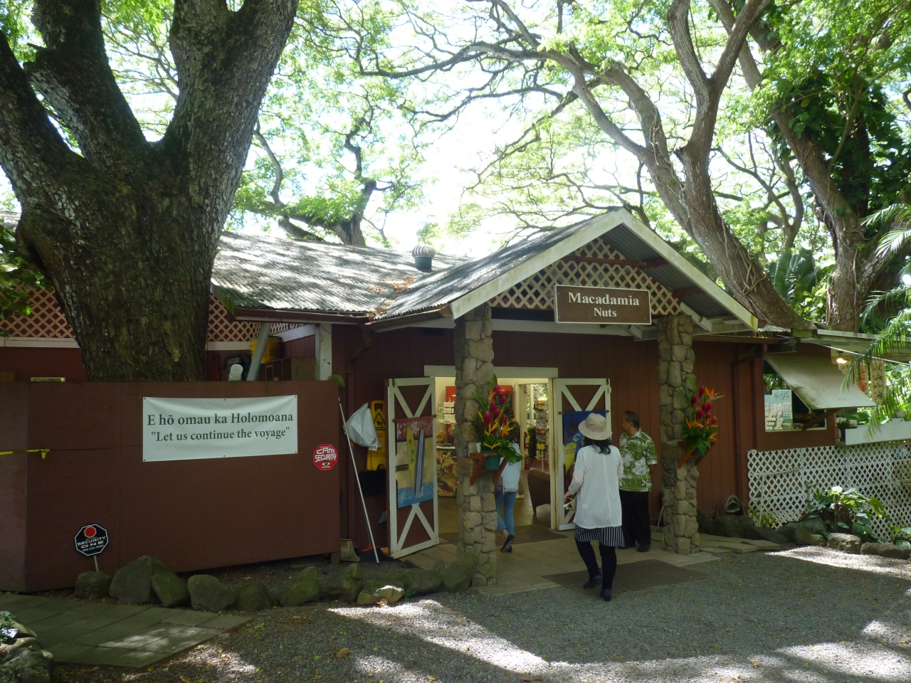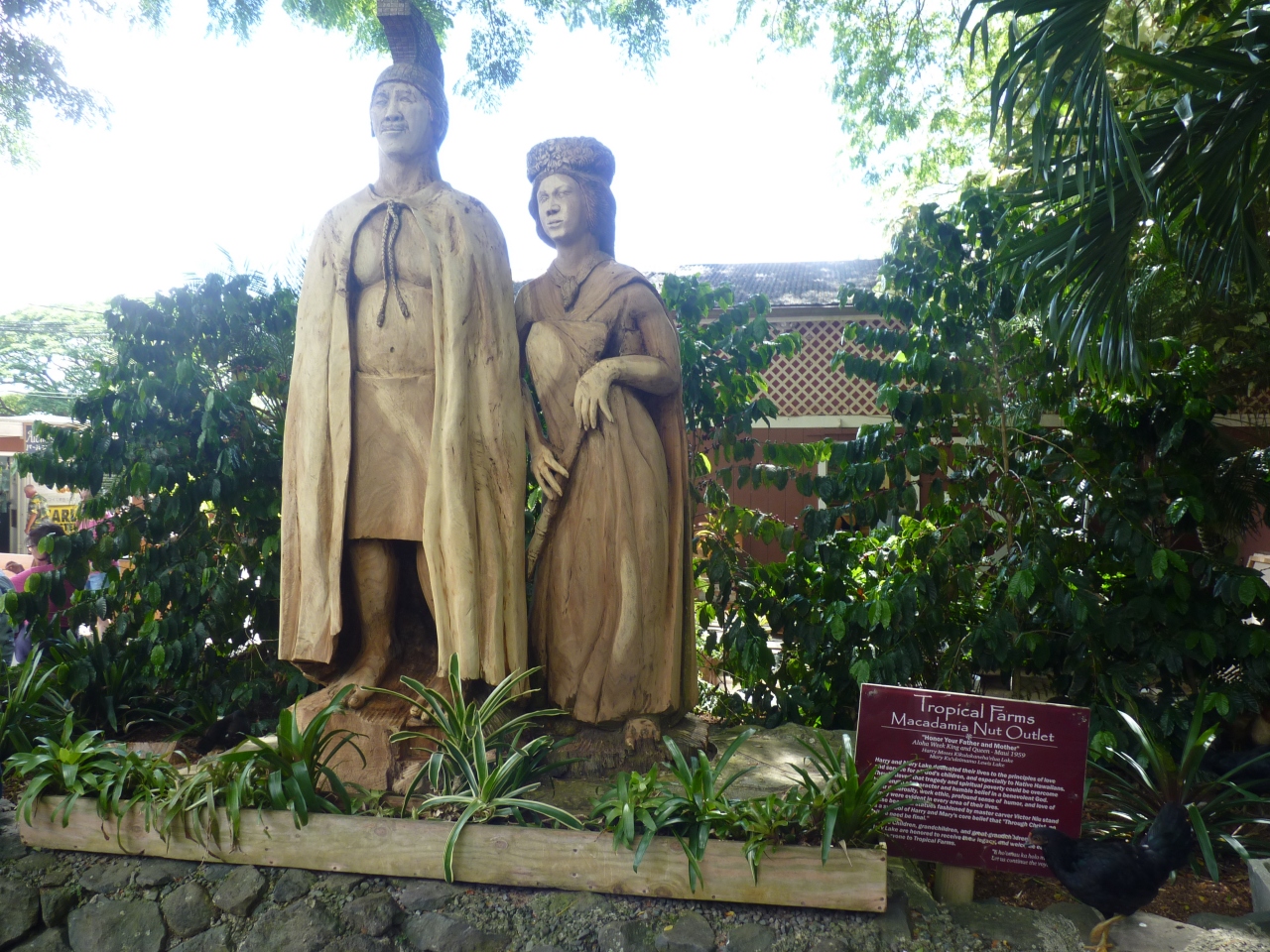 観光貸切バスの運転手のお勧めで休憩を兼ねて立ち寄った。ちょうどオハフ島の中間点くらいで、クアロアビーチの近くで見落としてしまうくらい少しへこんだところにある。入り口にハカメハマハ王?の像が建ち迎えてくれる。店内はいろんな種類のナッツ類が並び全て試食させてくれたり、コーヒ等の飲み放題のサービスがある。