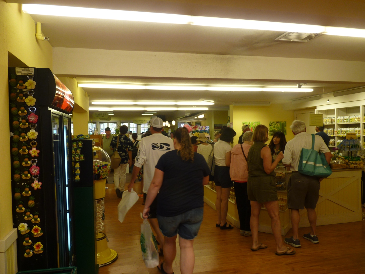 観光貸切バスで島を一周する途中で、ノースショアーより少し下った道筋にひときわ目立った建物が見えてくる、周りは全てパイナップル畑で覆われている。この館にはパイナップルで作られたオリジナルグッズがいっぱい展示され購買者の目を引く。運転手いわく・沖縄の移住者たちがココで生産の技術を身につけ、帰国後産地化されたとのこと。