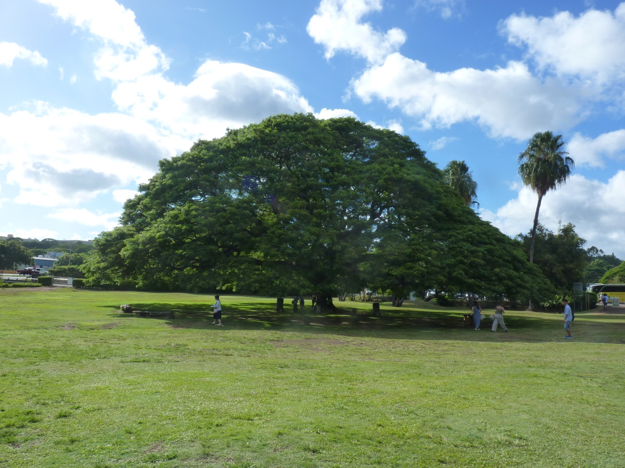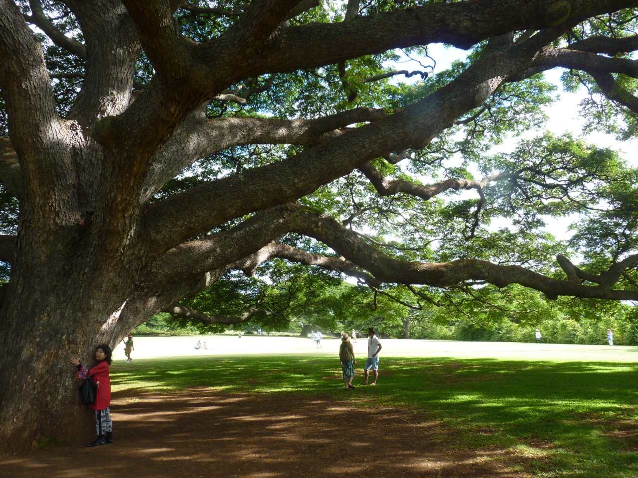 コマーシャルで一躍有名になった木がこんなところにあるなんて大変興味深かった。本名は「モンキーポッド」と呼ばれ中南米原産のマメ科の植物で、この公園で樹齢100年を超える大木となりコマーシャルに使われている。同じような木は市内のあちこちに見受けられ別にココ打破珍しくないようである。日本人が一人で騒いでいる???