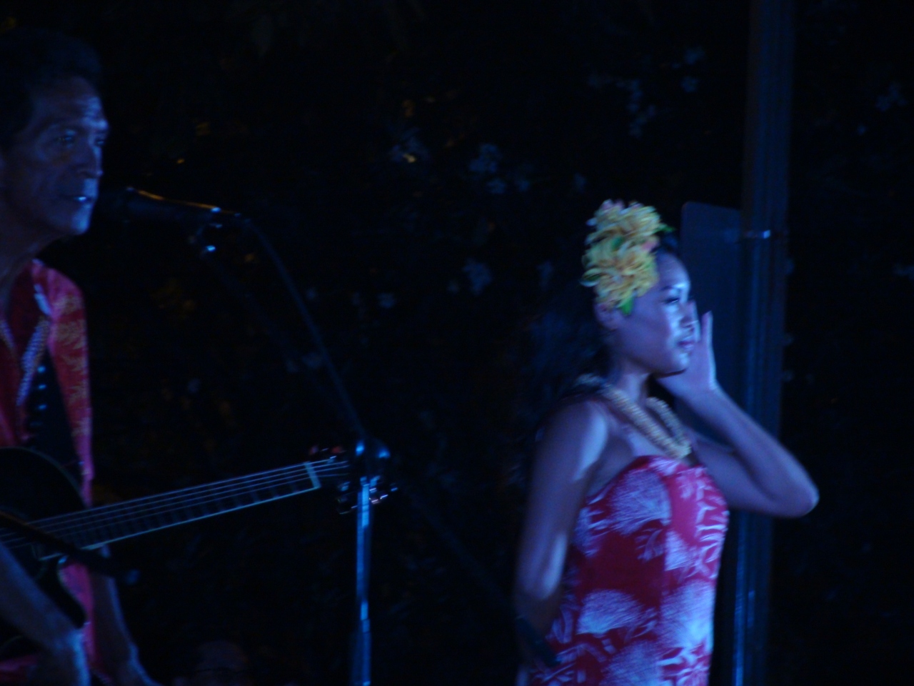 ホテルで本日のフラダンスショーの開催場所を聞き、出かけた。ココのショーは人気があるらしく30分ほど前に会場のロイアルハワイアンセンターの特設場に行くとすでに何人かの人が芝生の観覧場所に場所取りをしていた。甘いハワイアンソングにあわせて本場の不和ダンスを満喫できる。