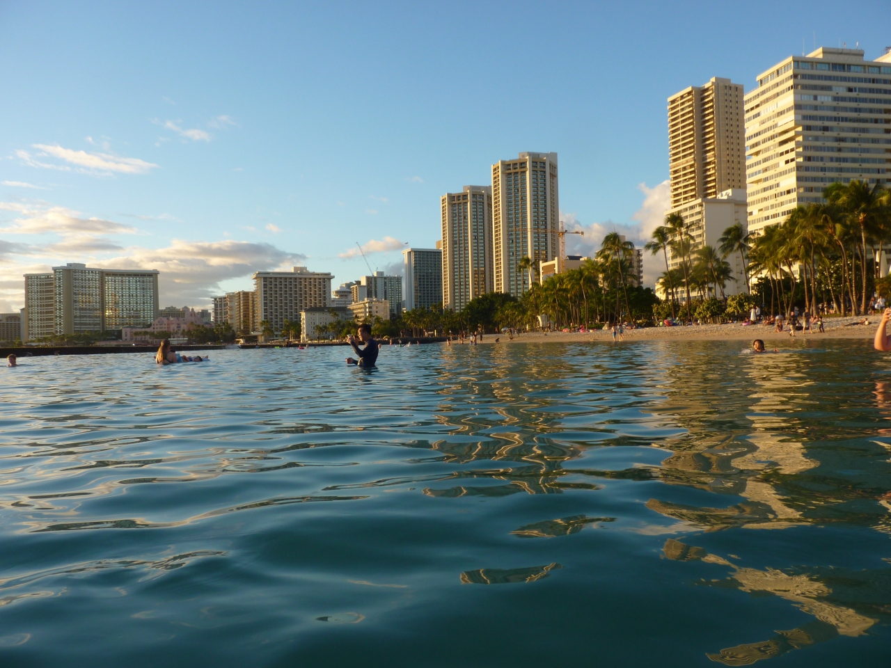 ワイキキビーチの中でも東よりで、沖には防波堤が作られ波除けになっており、家族で安心して海水浴ができる場所で、海につかりながらのサンセットはまた格別です。周りの施設も整っておりシャワーや休憩箇所もありまた違った風景が楽しめる。