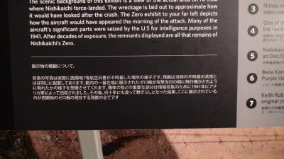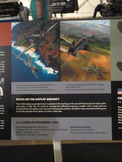 アリゾナ記念館から専用バスで島の反対側まで運んでくれる。旧格納庫を改造した博物館で入場料が25ドル。館内にはゼロ戦の復元機や残骸等が展示されたり、B25爆撃機、トムキャットなど7機の航空機が展示されている。操縦席のシュミレーションも体験できるコーナーもある。