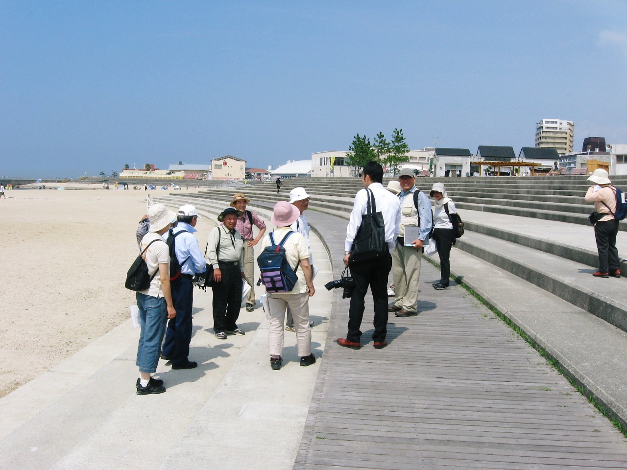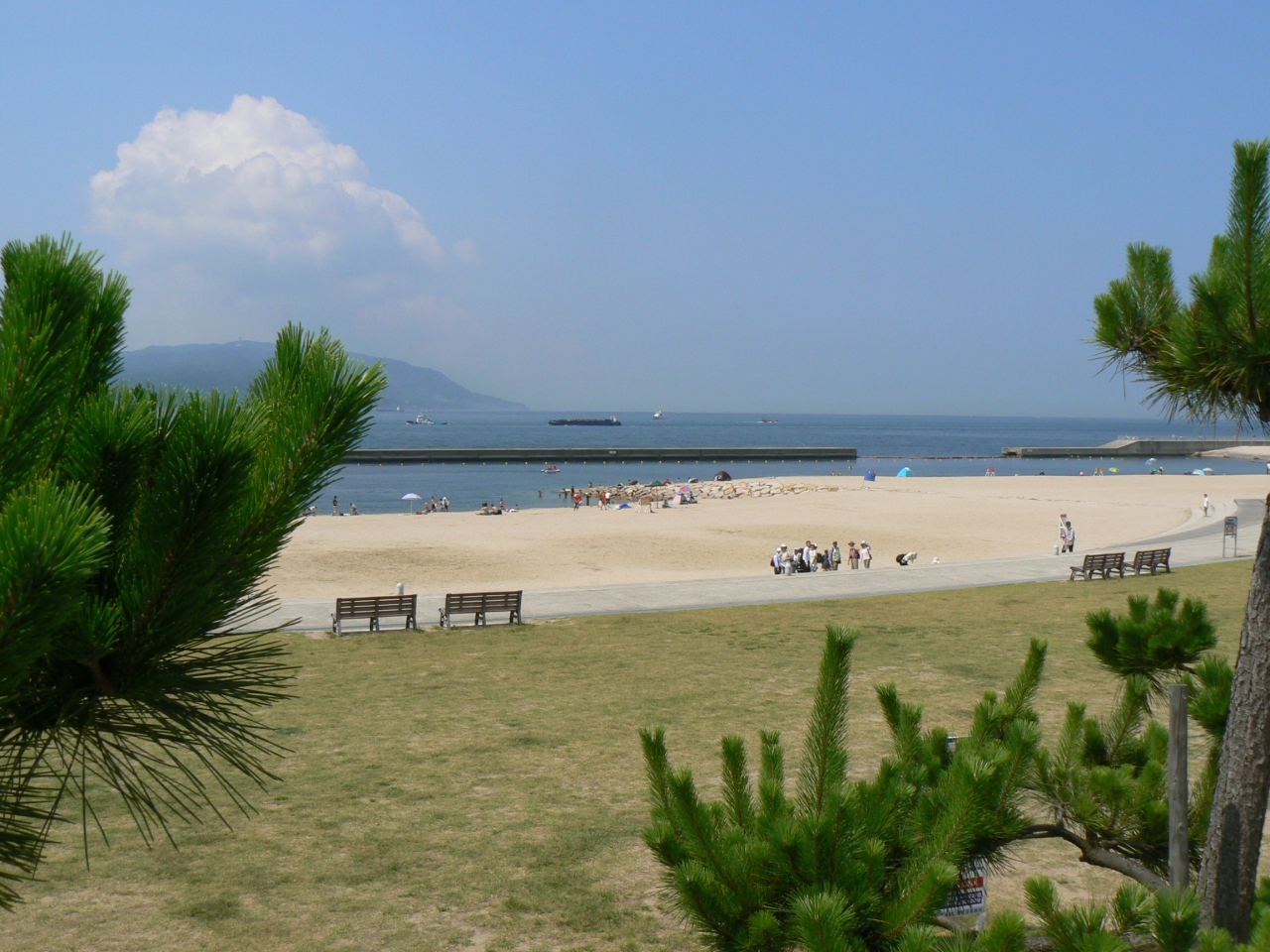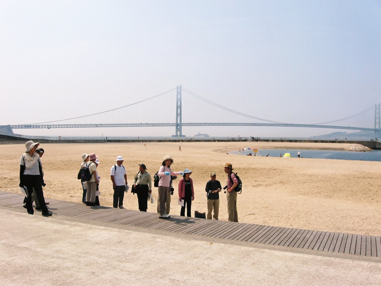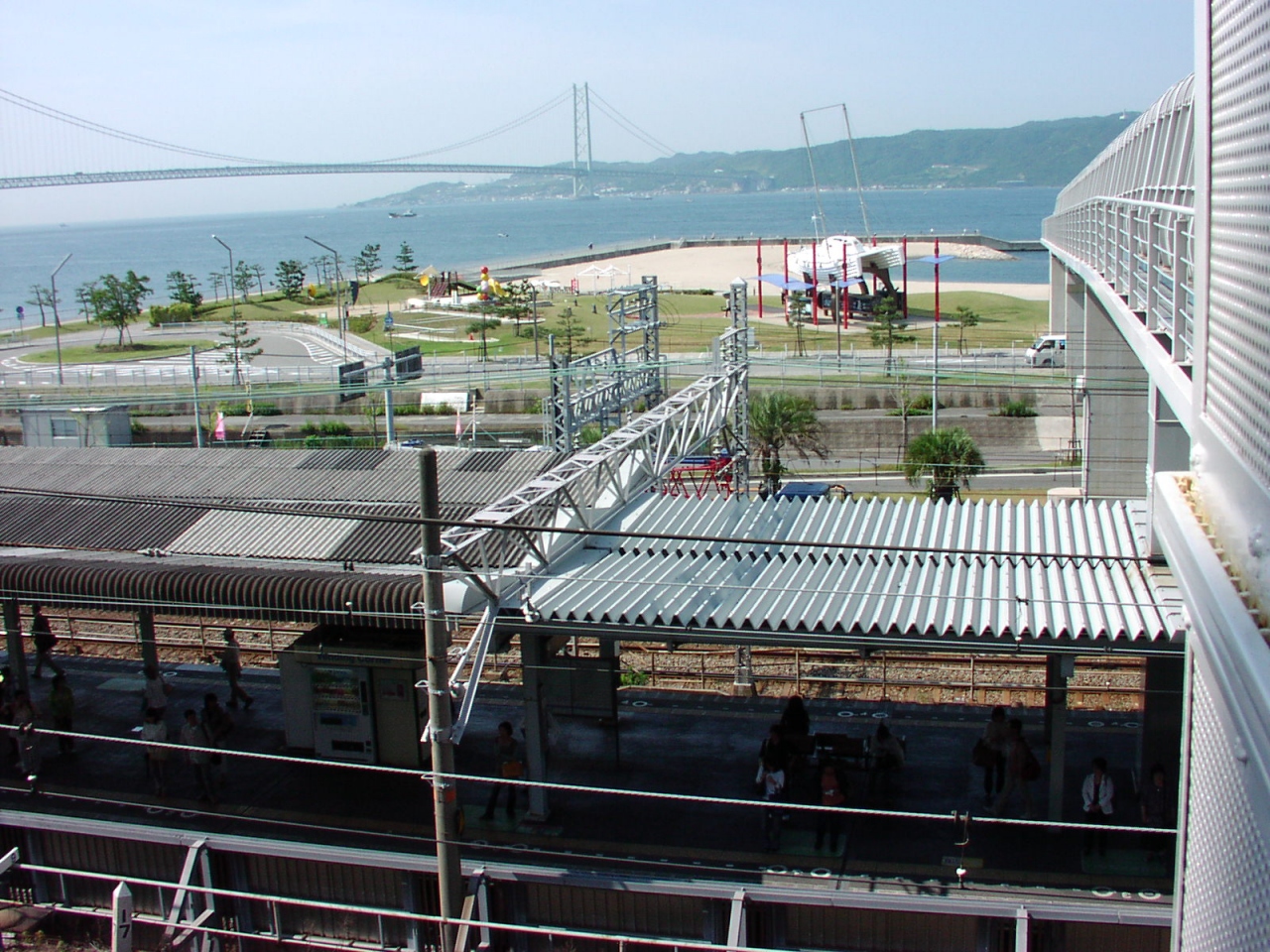 JR舞子駅を降りて、浜側に進むと芝生を張った公園が海辺一帯に広がり散歩道としてもよいところである。少し海辺に沿って進むと孫文の館もあり、すぐその上に明石大橋がかかっており下から眺める風景も決まっている。特に夕闇の迫る風景や、夜景でライトアップされているときも良い。