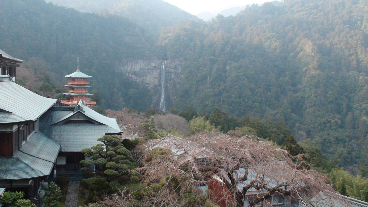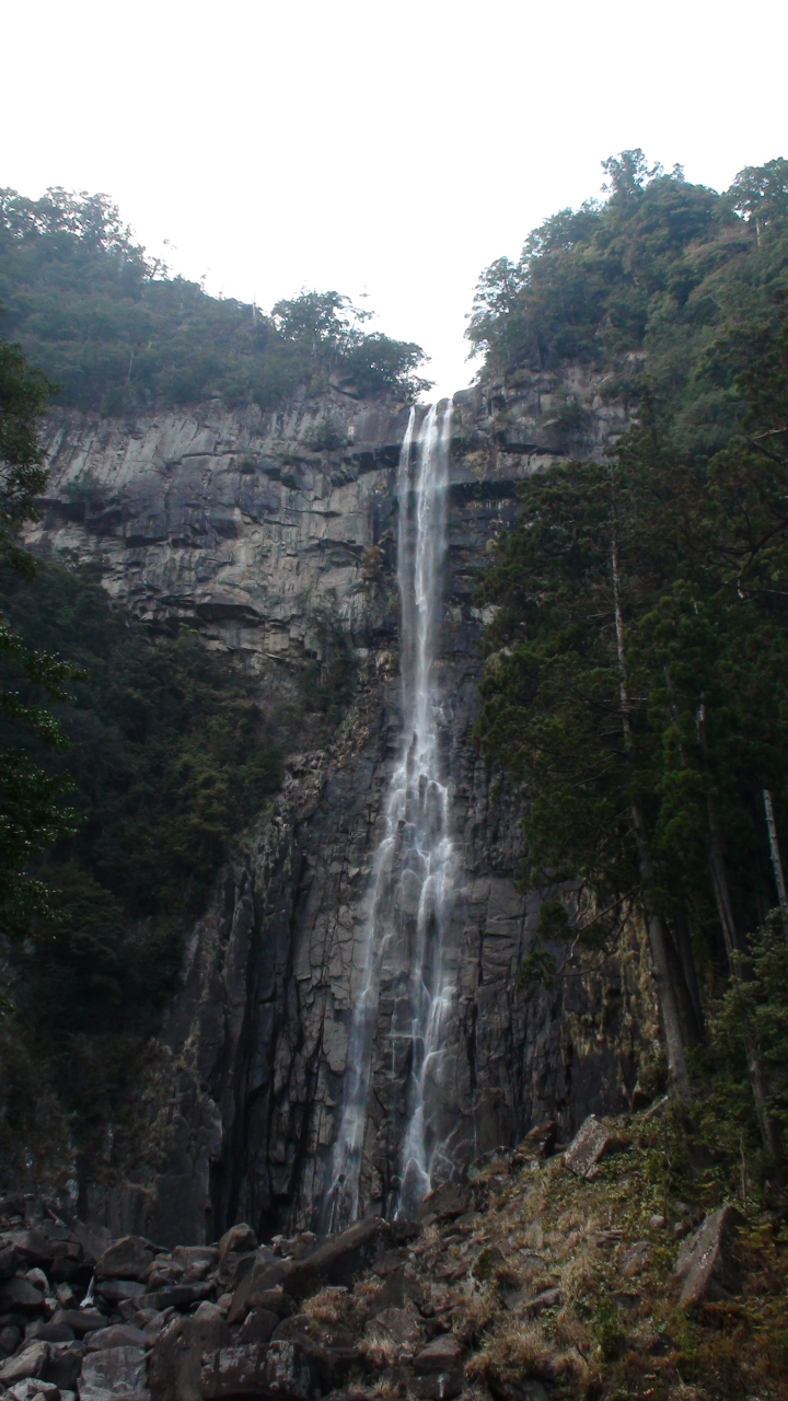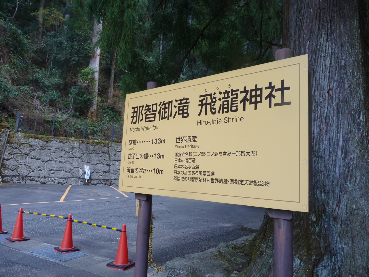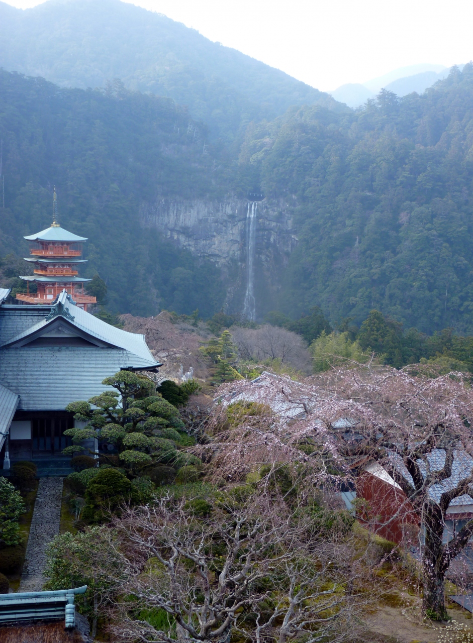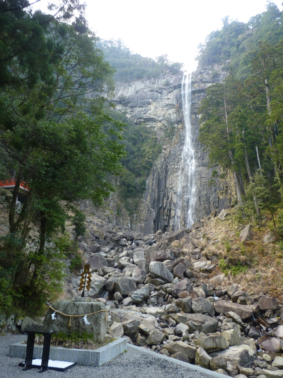 勝浦の町から名所看板を頼り曲がりくねった山道を登ること、約20分位で滝の登り口駐車場に着く。殆どが有料駐車場となっており、車を止めて石段を下ること約7~8分で滝を見下ろす広場に着く。乾季の為水量は少ないが、その高さから落ちる雄大さは圧倒される。次々と滝を訪れる観光客で狭い広場は一杯でゆっくり写真も撮れない!!