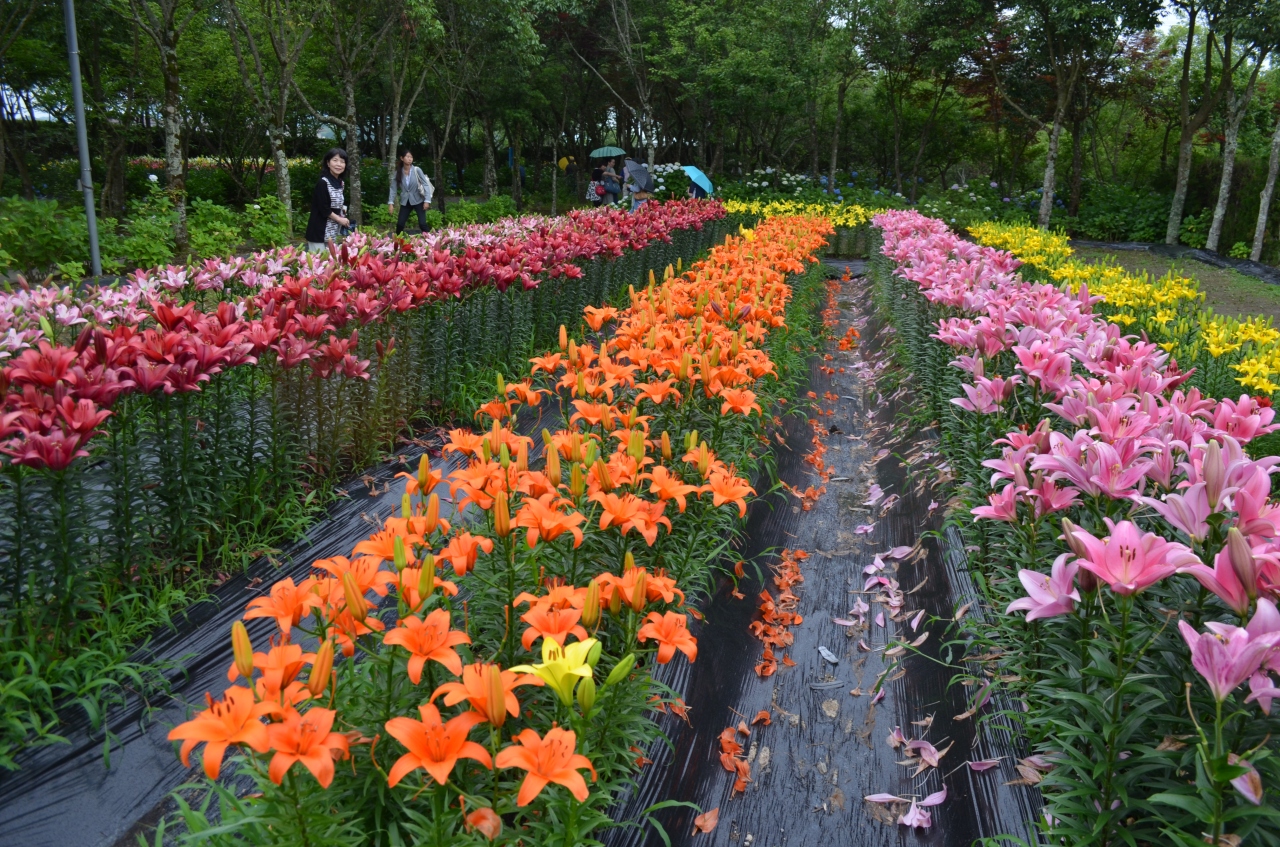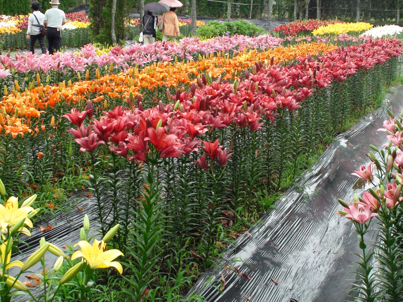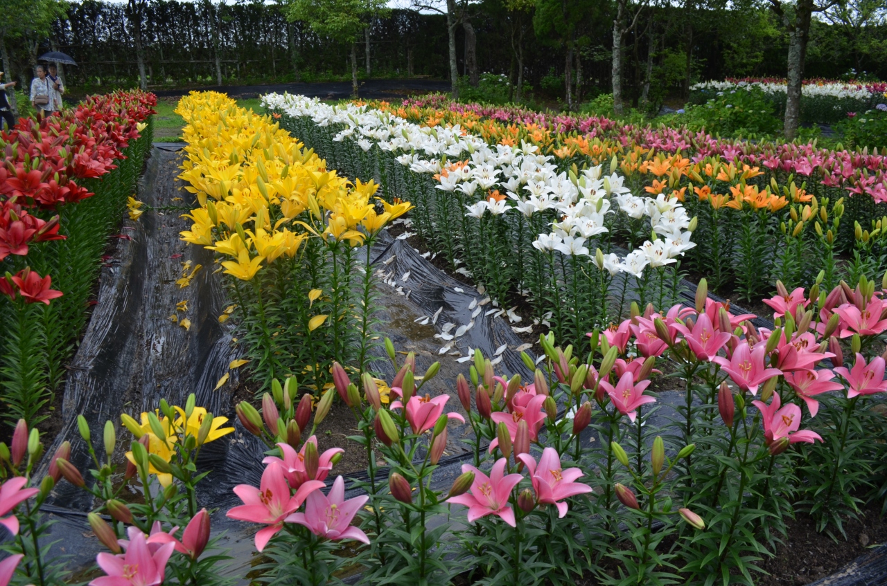 篠山城を通り過ぎ北へ進むと黒岡の交差点に出る。左折して直ぐ行くとゆり園の入り口に着く。観光バスも来ており賑わっている。60種10万本のゆりが6月中旬から7月上旬にかけ咲き誇る。入場料は大人500円、子供250円であった。午前8時から午後6時まで。ゆりの球根も売っている。