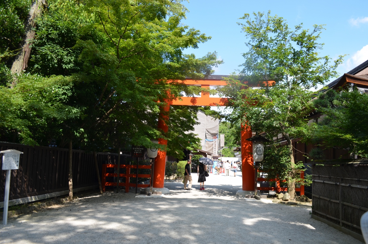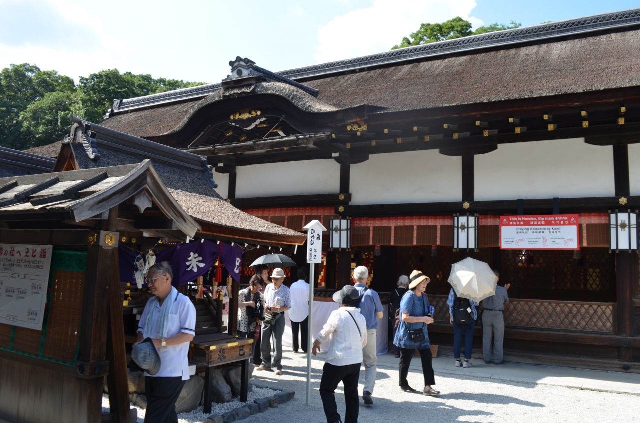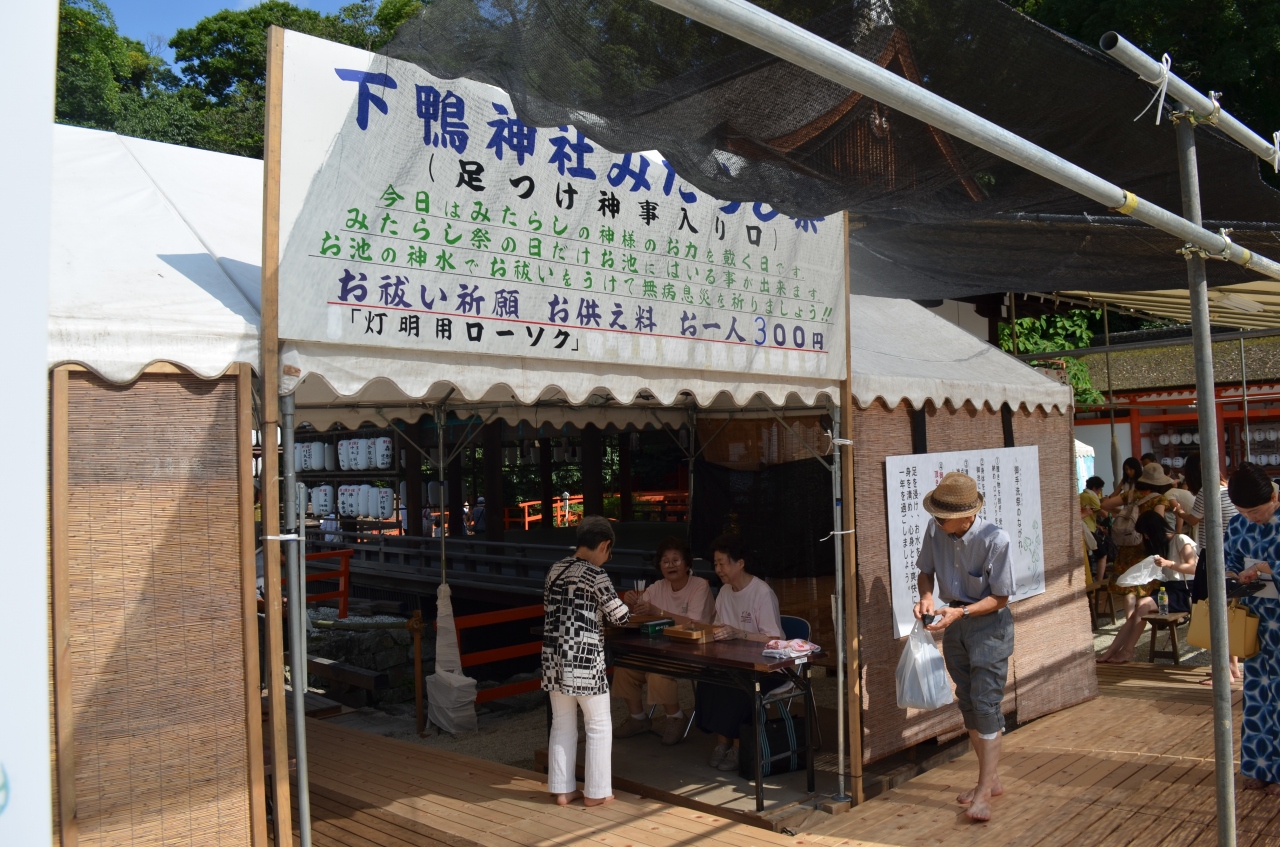 御影通りから表参道を抜けると本殿に入る門が現れる。この一帯は糺の森と呼ばれ、京都でも最強のパワースポットの一つ担っている。その門を潜ると目の前に舞殿が現れる。丁度この時期は「みたらし祭り」が行われ、多くの地元の参拝客で賑わっていた。舞殿も華やかな提灯で囲まれ不断では見られない風景で有った。