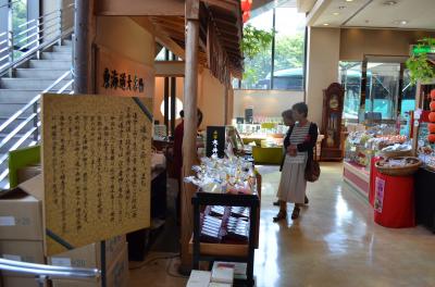 京都東インターから下りて直ぐにある。ここは追分店で昔からの歴史街道の道筋にあり。店内には八橋だけでなく「大津絵」なども販売している。名物の夕子の製造ラインが2回へ上がると見ることが出来る。2階には歴史的に興味ある算盤等も展示され楽しめる。