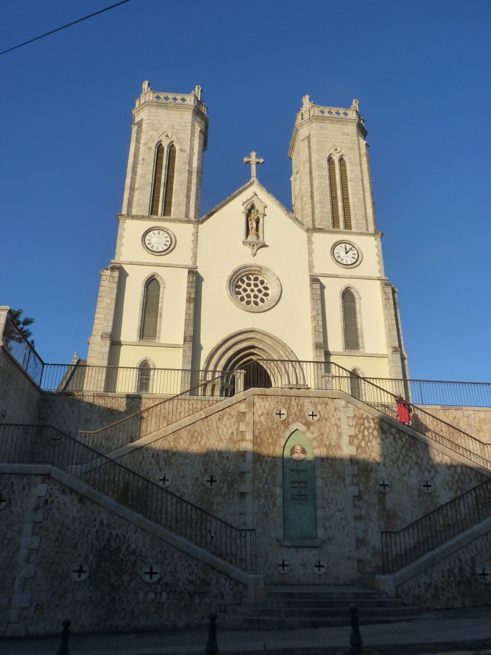 ヌメア市内から歩いて15分くらいの少し小高い丘の上に聳えるプロテスタント教会で、この地方の教会としてはかなり大きな教会でした。二つの時計台を持ち荘厳な鐘の音か聞かれる。堂内にはパイプオルガンもありステンドグラスも美しい。