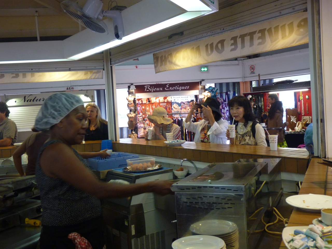 ヌメアの名物観光の朝市へ出かけたら是非立ち寄ってみよう。朝市は7時頃から始まるが現地の人が買い物に来る時間、8時半ころが一番よく賑わっているみたい。その一角に六角形をしたスタンドテーブルで思い思いの形で地元の人や観光客がコーヒを注文してブレッドに舌つ鼓みしている。ドリンク、食べ物種類もそこそこありスタンドに座り立ち食いして楽しそうに語っている。