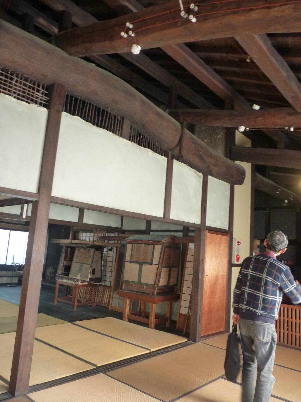 部屋数23,総畳み数168畳、1階が奥屋敷、2階上段の間、箱階段、隠し階段、貴人専用の御成り門、玄関吊り上げ二重戸など見所がたくさんあります。ユニークなのは玄関の戸が二重になって滑車式で上下するようになっており、泥棒除けだそうです。内部の展示も識に応じて変えているそうです。
