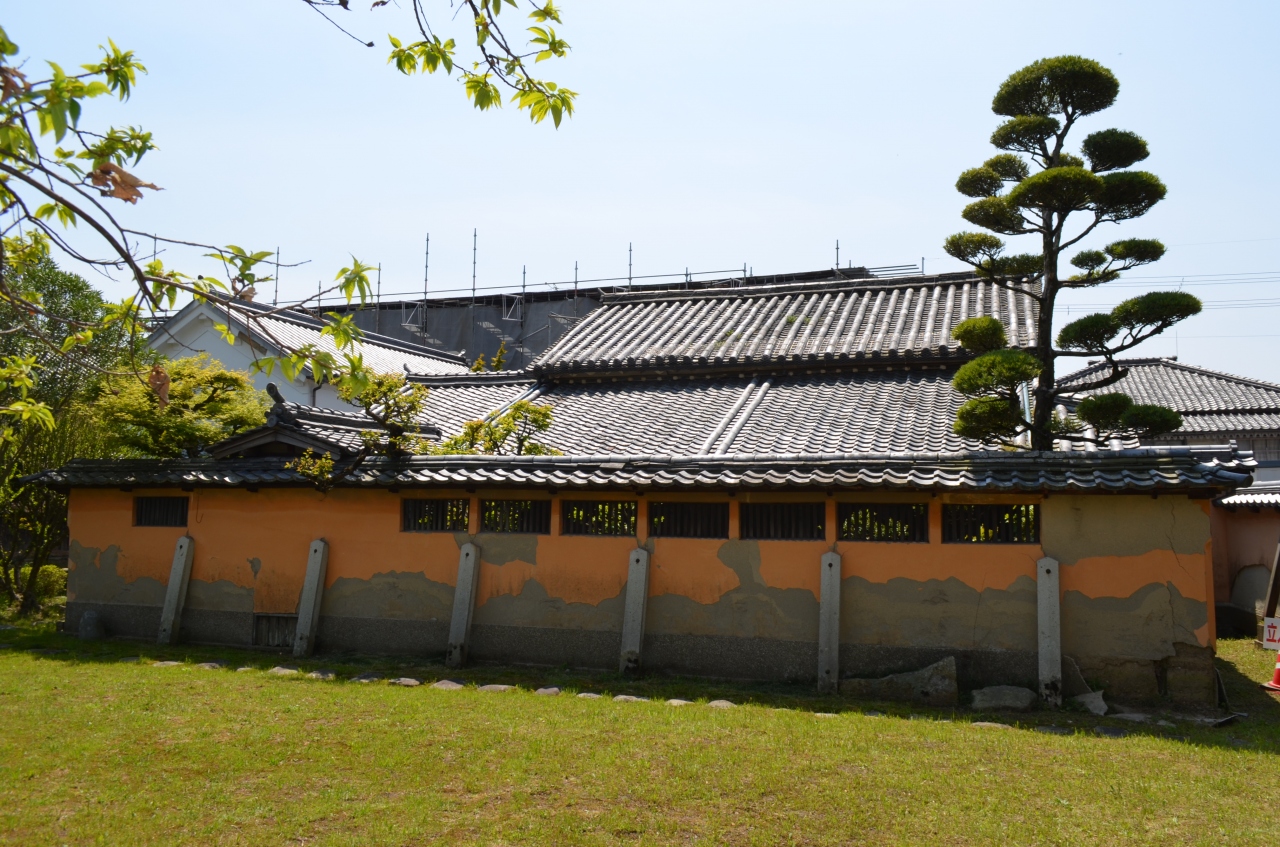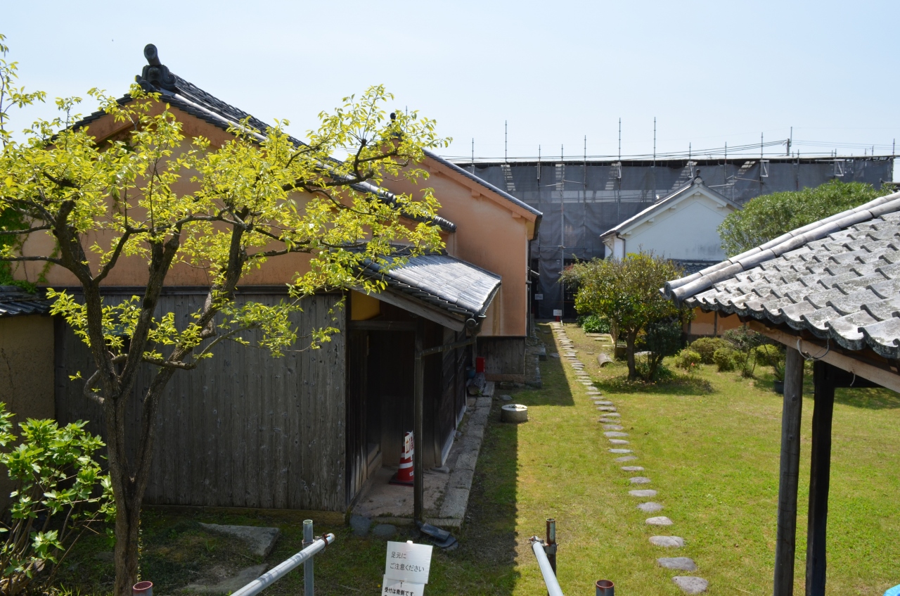 この住宅は、国と県からの補助金で現在修復中です。当時としてはこの地方ではかなりの豪商で姫路藩との取引で財を成したようです。主に材木等で近隣の入手を一手に纏めていました。母屋、離れとその広さは当時としては大きく歴史の重みを感じます。修理に入って2年以上は経っていますが、未だ修復中です。