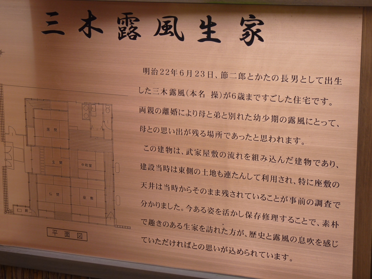 龍野城のすぐ下にあり木造平屋建てで、建築当時は、東側の土地も利用されていたと聞く。明治4年ごろから22年の間に建築されたらしい・・。露風はこの家に6歳まで両親・弟と住んでいた生家です。この度、市が修復し一般に無料開放されることになっている。