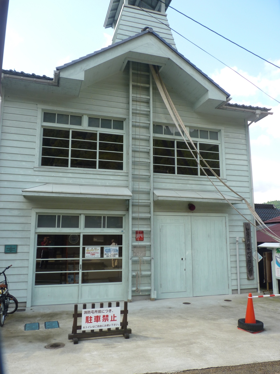 智頭宿の上町に位置し、国登録有形文化財になっており木造2階建て、切妻破風で切り上げ、その上に火の見やぐらが置かれている消防屯所で、昭和16年に建築され、平成23年に改修して現在も現役で活躍しているそうです。