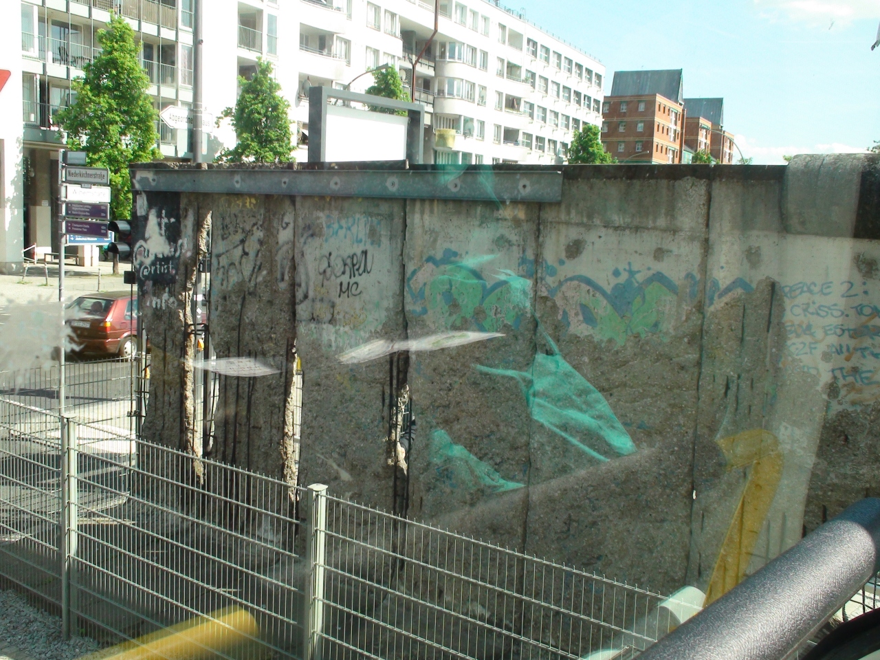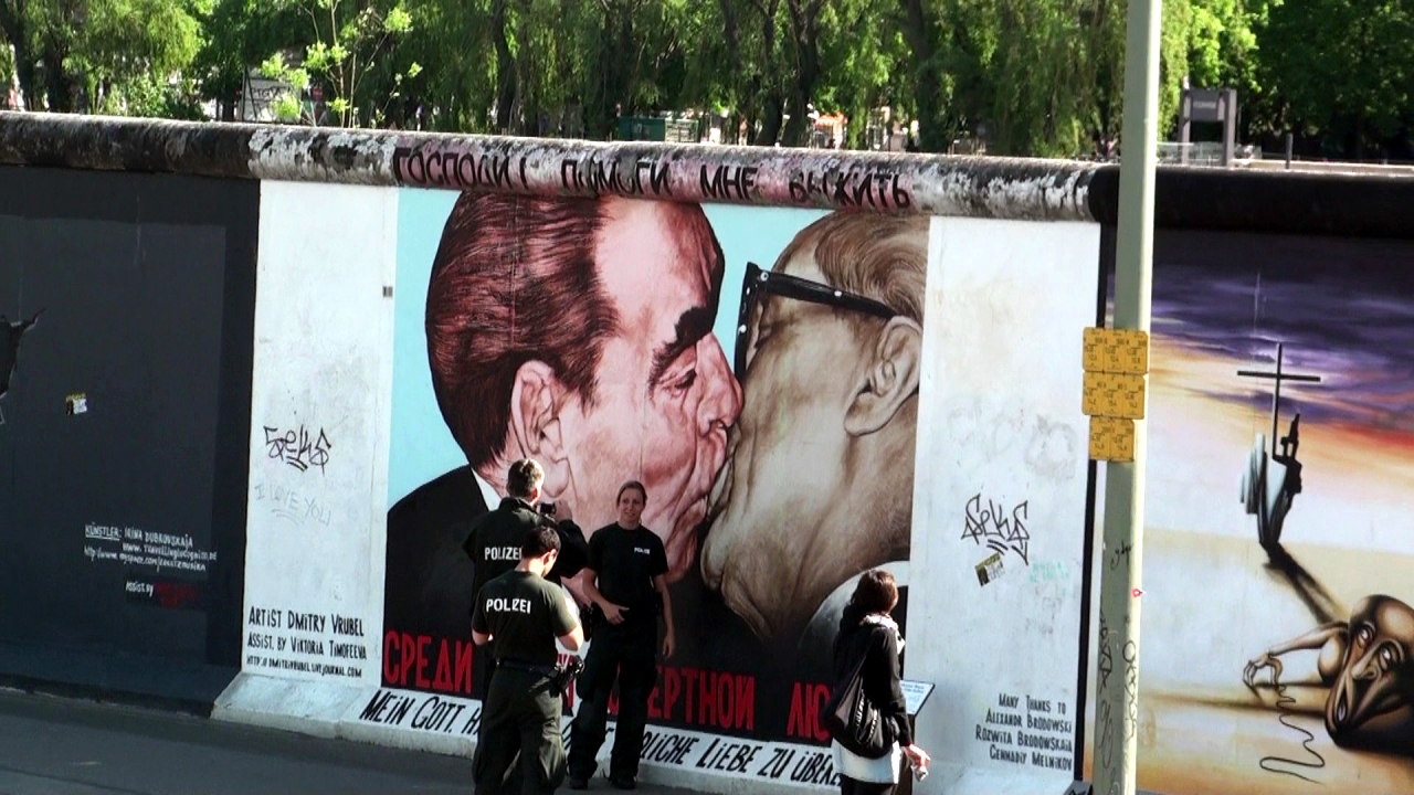 シュプレー川沿いのミューレン通りに面して建っているが、車の通行が激しいので注意して渡らねばならない所にある壁。約1.3キロメートルがオープンギャラリーとなっている。ドイツ内外の画家が描いた壁画部分の壁が保存されている。