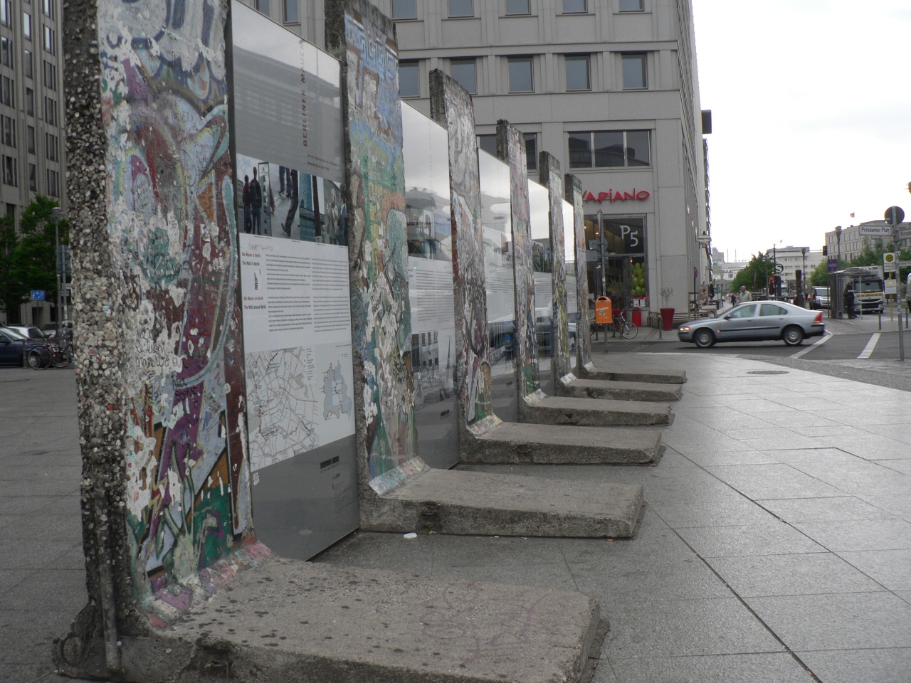ブランデンブルグ門から南ヘ100メートルほど進むと、2711体ものコンクリート製ブロックが道路際に現れる。ここは虐殺されたユダヤ人に捧げられた記念碑で、地下に展示室がある。高さがまちまちのブロックの間は通り抜けられ、幾何学模様の迷路を歩くような不思議な体験が出来る。