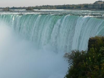 カナダ滝の真横にある最も有名なビューポイント。カナダ側に向かってテーブルのように突き出しており、悠然と流れてきた青く透き通った水が一気に落ち込んでゆく姿を間近に見られ、思わず吸い込まれるような感じがするほど巨大である。隣には土産物屋も並んでおり楽しい。