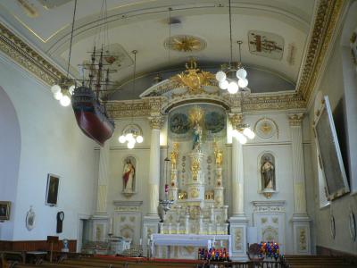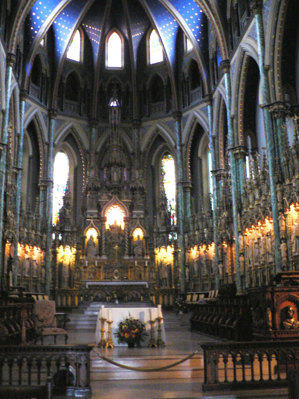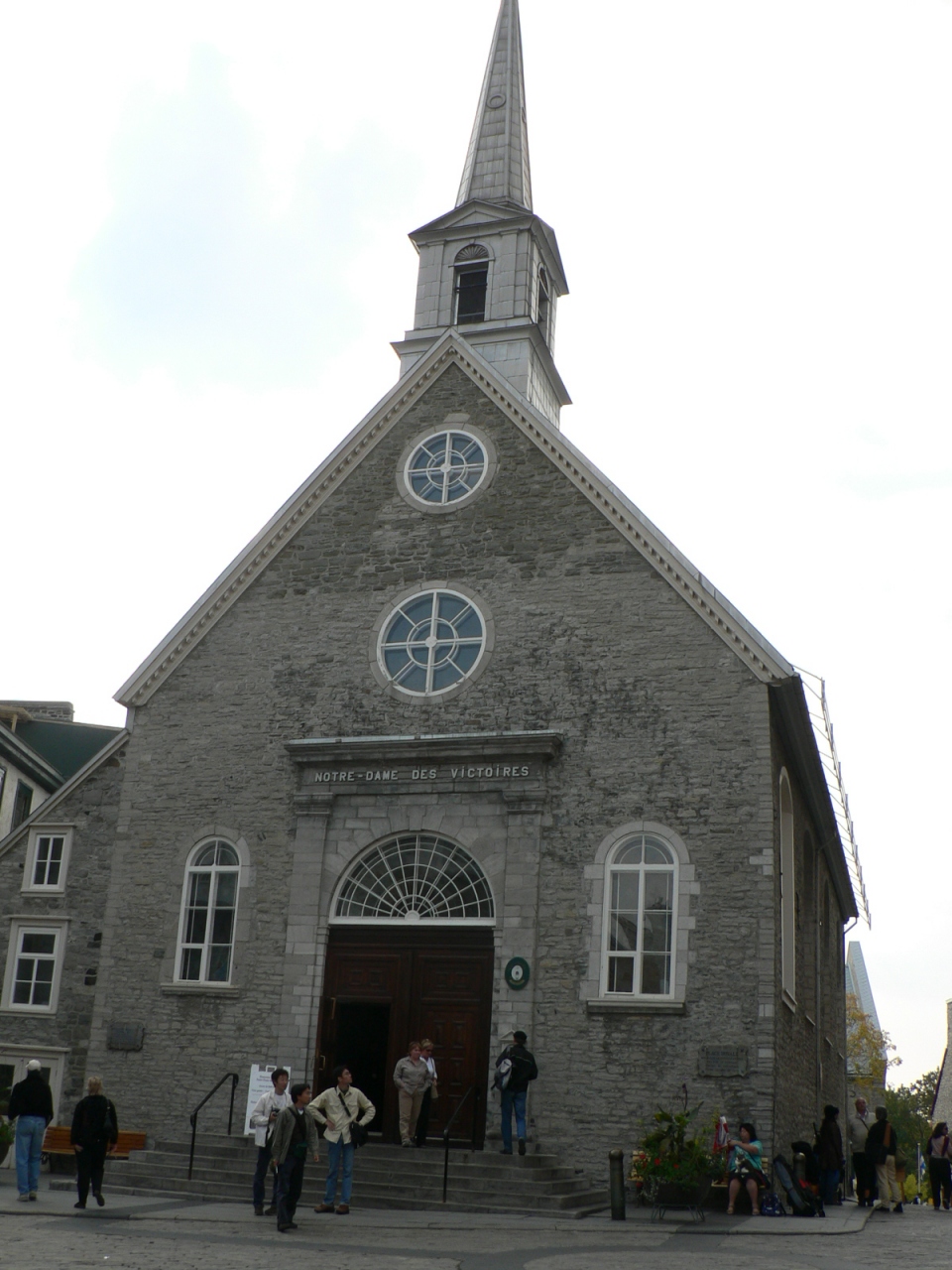 ロワイヤル広場の一角に建ち、一名勝利のノートルダム協会という。北米最古の石造り教会。勝利の名は、英国群の攻撃に敗北を繰り返すフランス軍がかろうじて逃げ切った1690年と1711年の戦いを記念してつけられた。木造船ル・プレーゼ号のレプリカがつるされている。