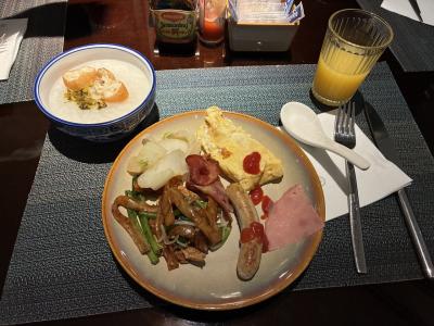 2日目の朝食バイキング。お粥が美味しい