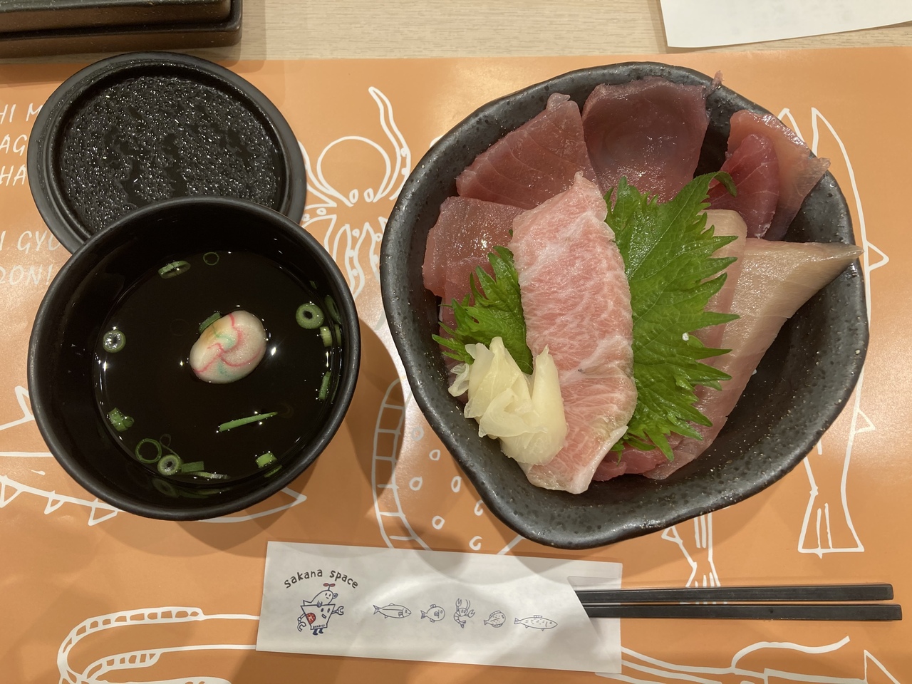 土曜日の買い物途中のランチで利用しました。この店は水産会社が経営しているので新鮮な魚が食べれます。天ぷらなどメニューが豊富で迷いましたがマグロ丼を注文しました。ボリュームは男性には少な目ですが味は大満足です。