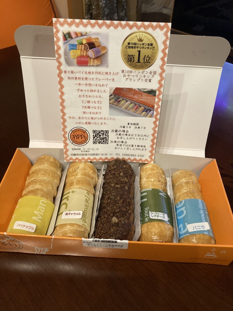 デパートの物産展に出店してました。パイナップルや黒糖など沢山の種類から選べるコルネが大変美味しそうだったので買いました。サクサクの生地の中に詰まったクリームの中にパイナップルの粒が入ったコルネは想像以上に美味しかったです。