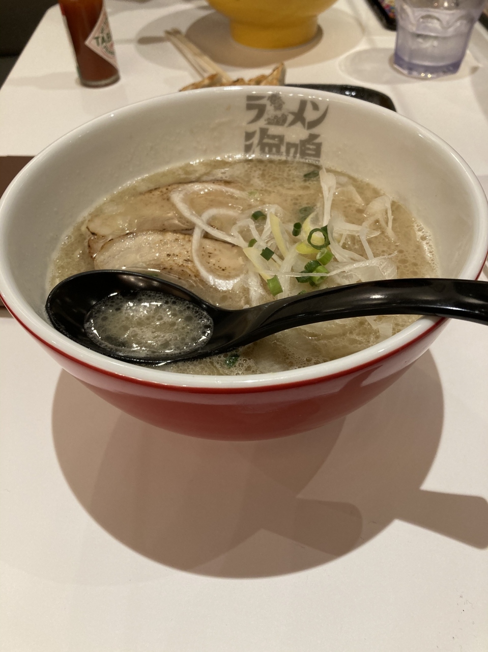 休日のランチで利用しました。開店前から行列してたので人気がある店だと思い並んで入りました。オススメの魚介系のとんこつラーメンと餃子を注文、餃子はタレを付けないタイプで珍しく思いましたが美味しかったです。ラーメンも魚介の風味が感じられとんこつラーメンが苦手な人でも大丈夫と思います。もちろん味は非常に美味しかったです。