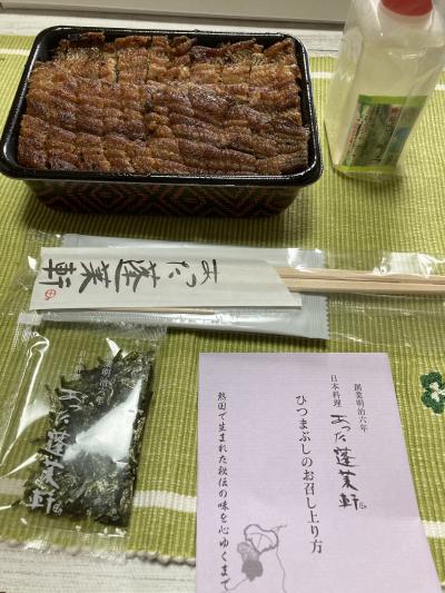 あの有名な蓬莱軒のひつまぶしを自宅で楽しめるデパ地下の売店です。今日は電話で予約しておいたので待たずに買う事が出来ましたが、タイミングによっては待ち時間がある様です。茶漬け用の出汁やワサビもセットされてます。