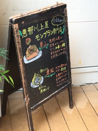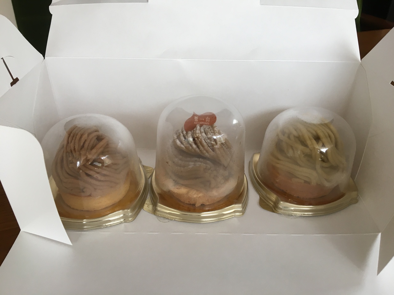 まだまだ暑い日が続いてますが、早くも秋の味覚の栗を使ったモンブランが人気でした。栗きんとんが有名ですがモンブランは初めて。3種食べ比べのセットを頂きましたが、ほんのりと秋の風味を一足先に感じる事が出来ました。