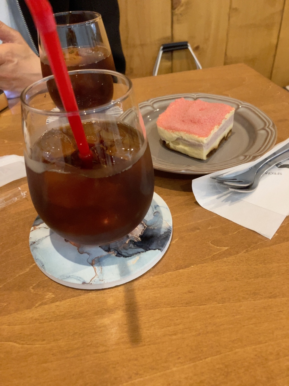 土曜日のランチの後のお茶する店を探していて見つけた店です。水出しコーヒーあります、との看板に誘われて入りました。店内は木の板が壁一面に貼ってある温かみにある雰囲気です。季節限定のいちごのティラミスと一緒に美味しい水出しコーヒーが飲めて満足しました。