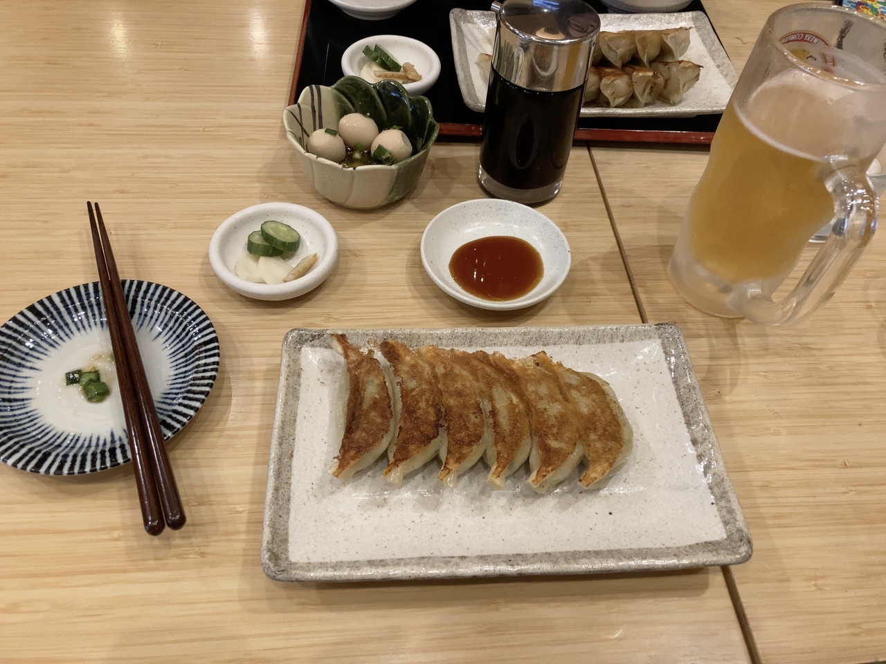休日のランチで利用しました。店の名前の通り、ぎょうざの店です。自分は生ビールのセットを頂きました。うずら卵とニラの漬け物も単品で頂きましたが とっても美味しい。ぎょうざもニンニクが効いてて美味かったです。ぎょうざ定食には ぎょうざが2人前付きます、結構ボリュームあるので注意して下さい。