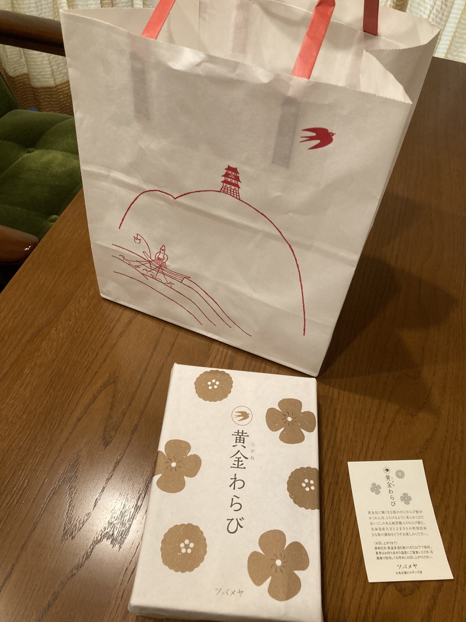 箱一杯にきな粉が詰まったわらび餅が評判と聞いてたので休日の買い物帰りに買って帰りました。大き目のわらび餅が9つ入っていてきな粉の中から掘り出すのが大変でしたが冷んやりして美味しかったです。残ったきな粉はもったいないので取って置いて料理に使えます。