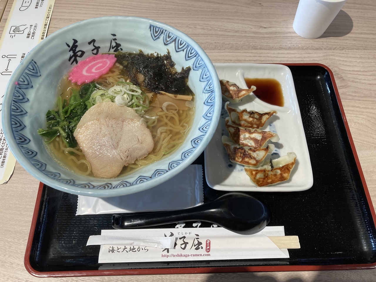 休日の買い物途中のランチで利用しました。北海道のラーメンなので味噌ラーメンにしようかと思いましたがメニューに塩ラーメンを見つけて餃子と共に注文しました。太麺がスープに良く合う美味しいラーメンです。小ぶりな餃子もニンニクたっぷりで満足しました。