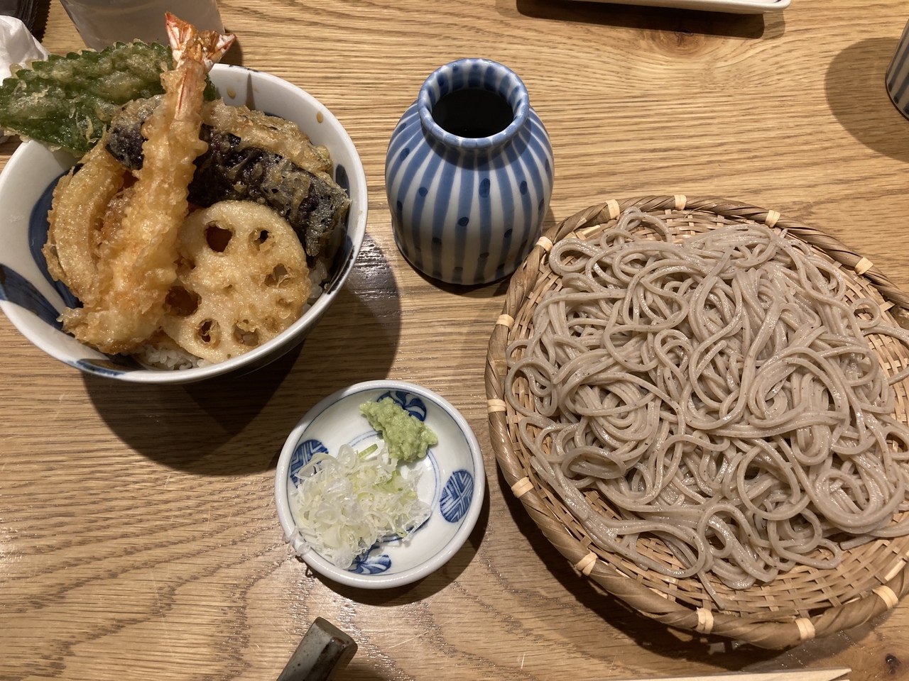 休日のランチで利用しました。暑い日だったので迷わず涼しげな蕎麦を食べる事にし店に入りました。ミニ天丼ともり蕎麦のセットを頂きましたが天ぷらはサクサク、蕎麦も喉越し良く大変美味しかったです。店内にはジャズのBGMが流れてオシャレな雰囲気でした。